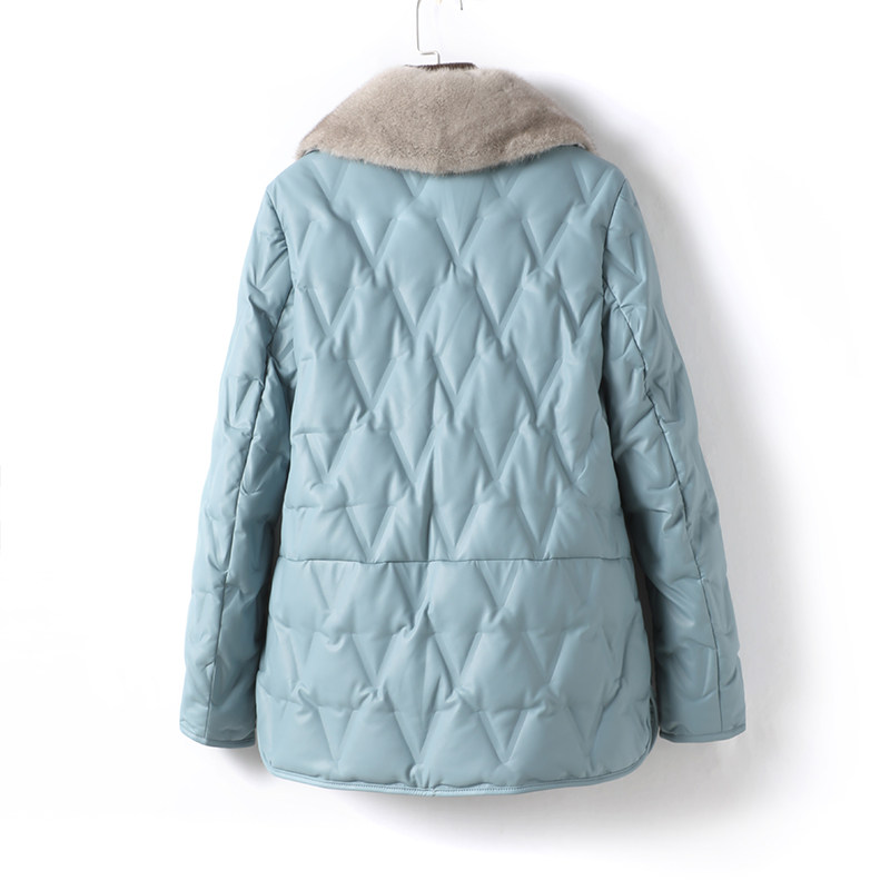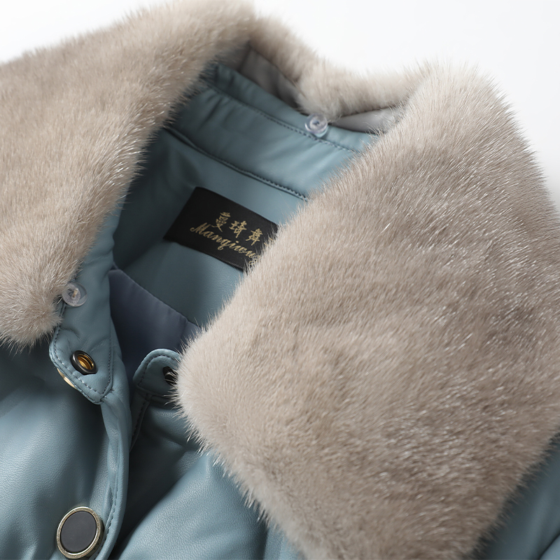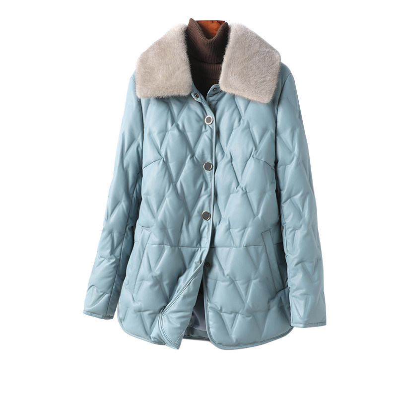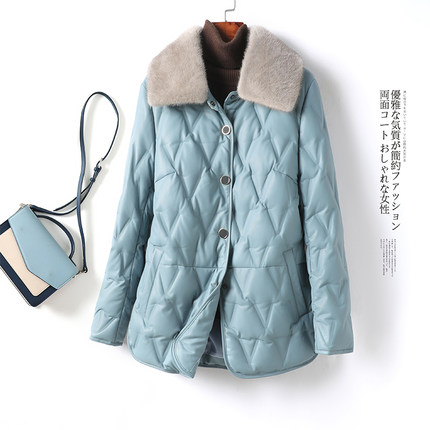 绵羊皮女外套貂毛领韩版加大码真皮夹克白鸭绒2025新款羽绒服皮衣