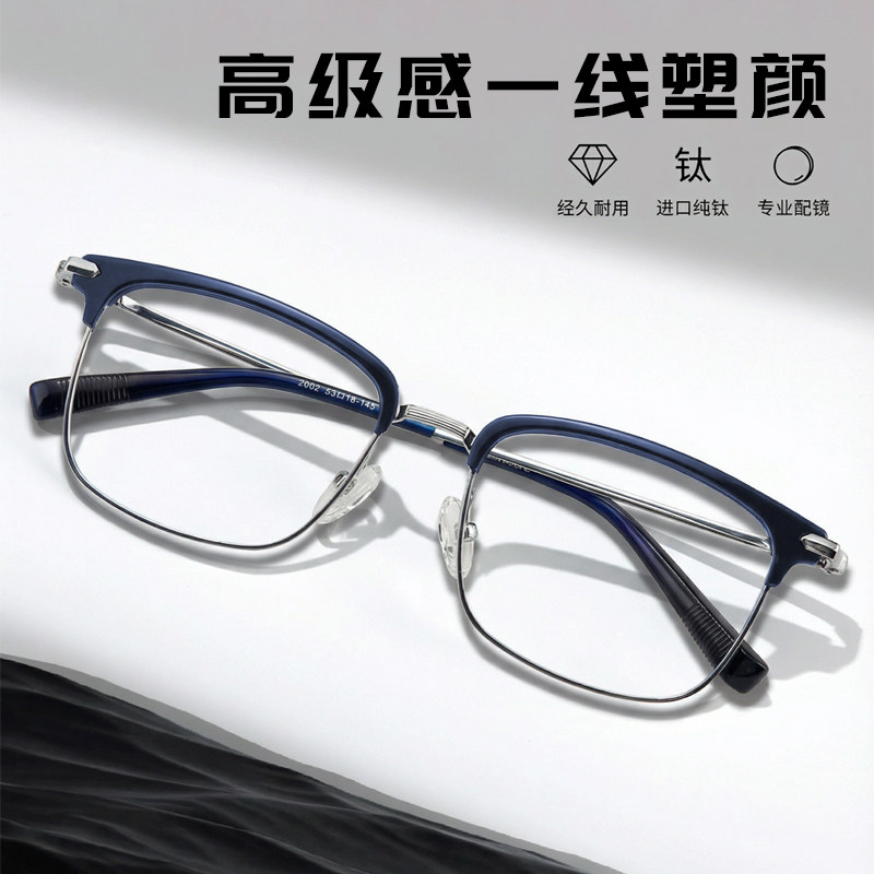 纯钛超轻10克眉线半框商务板材眼镜大框大脸加宽近视可配度数男款