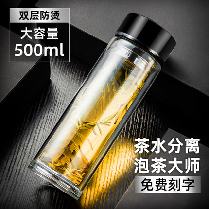 双层玻璃杯家用茶水分离杯子男士高档便携大泡茶杯带盖透明水杯女