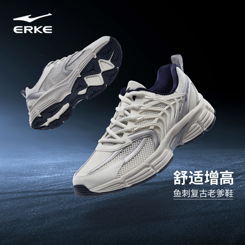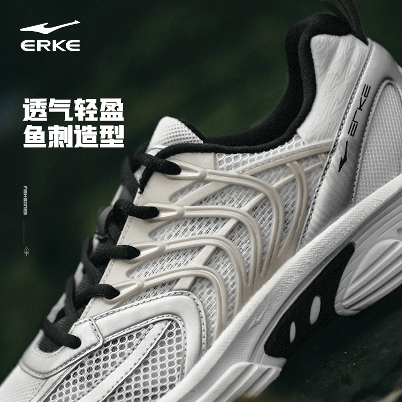 鸿星尔克鱼刺复古跑步鞋网面透气男鞋鱼骨户外老爹鞋子运动休闲鞋