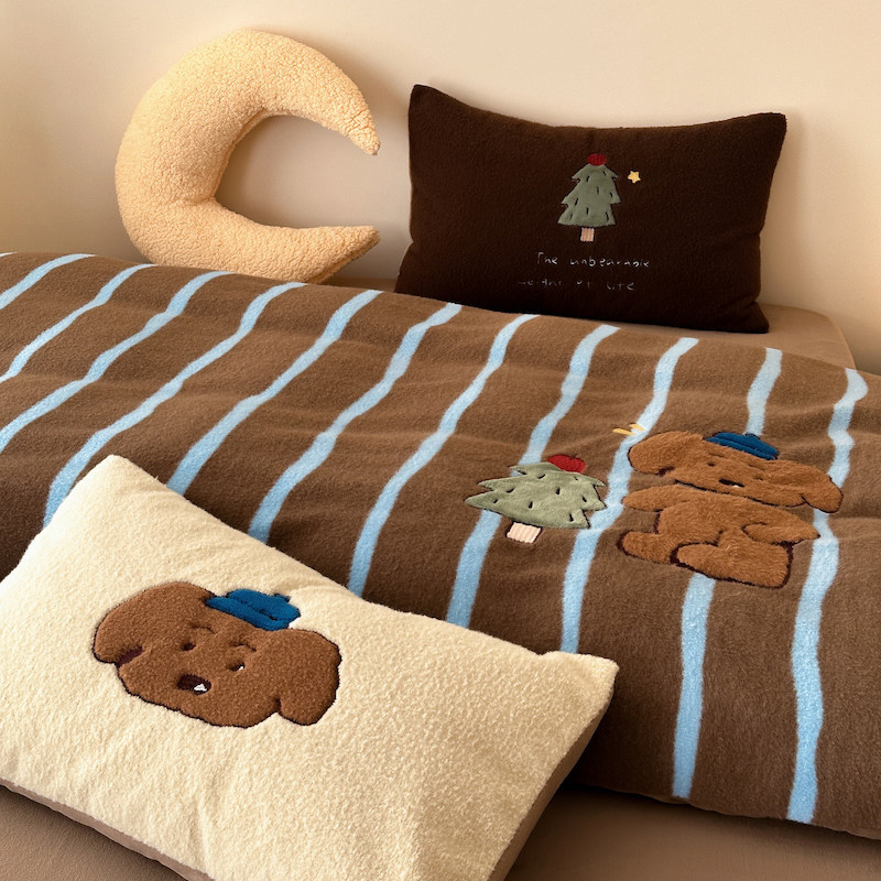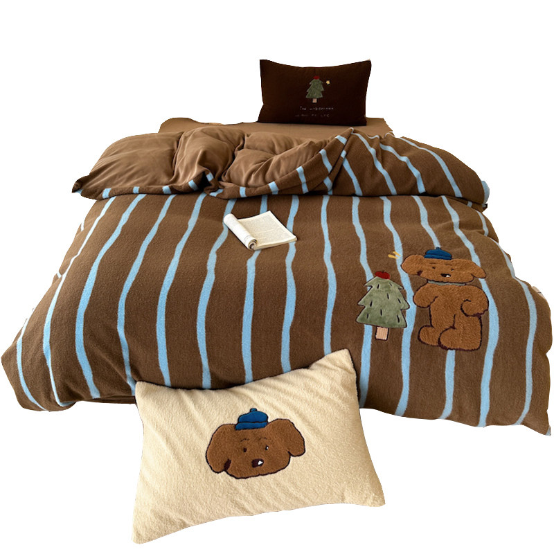 美拉德复古狗狗秋冬加厚仿羊绒牛奶绒保暖床上四件套法兰绒珊瑚绒