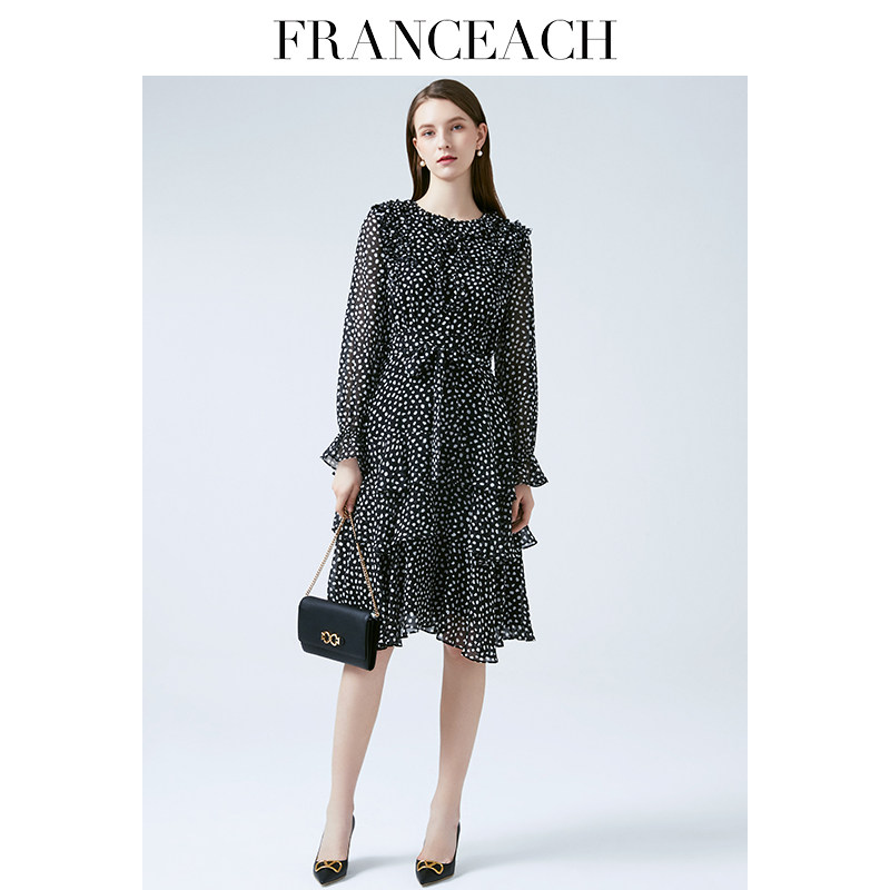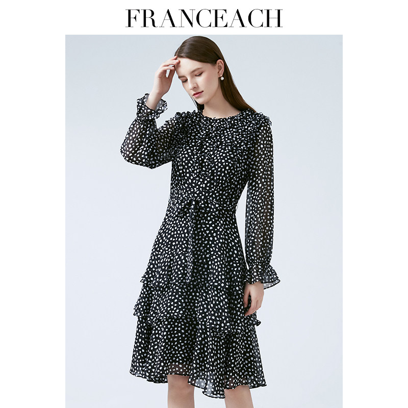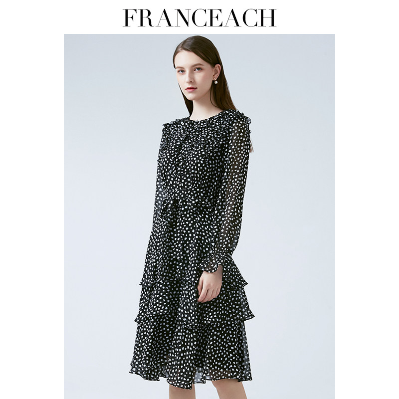 法涵意弛波点真丝连衣裙女2023年春季新款桑蚕丝年轻款碎花蛋糕裙