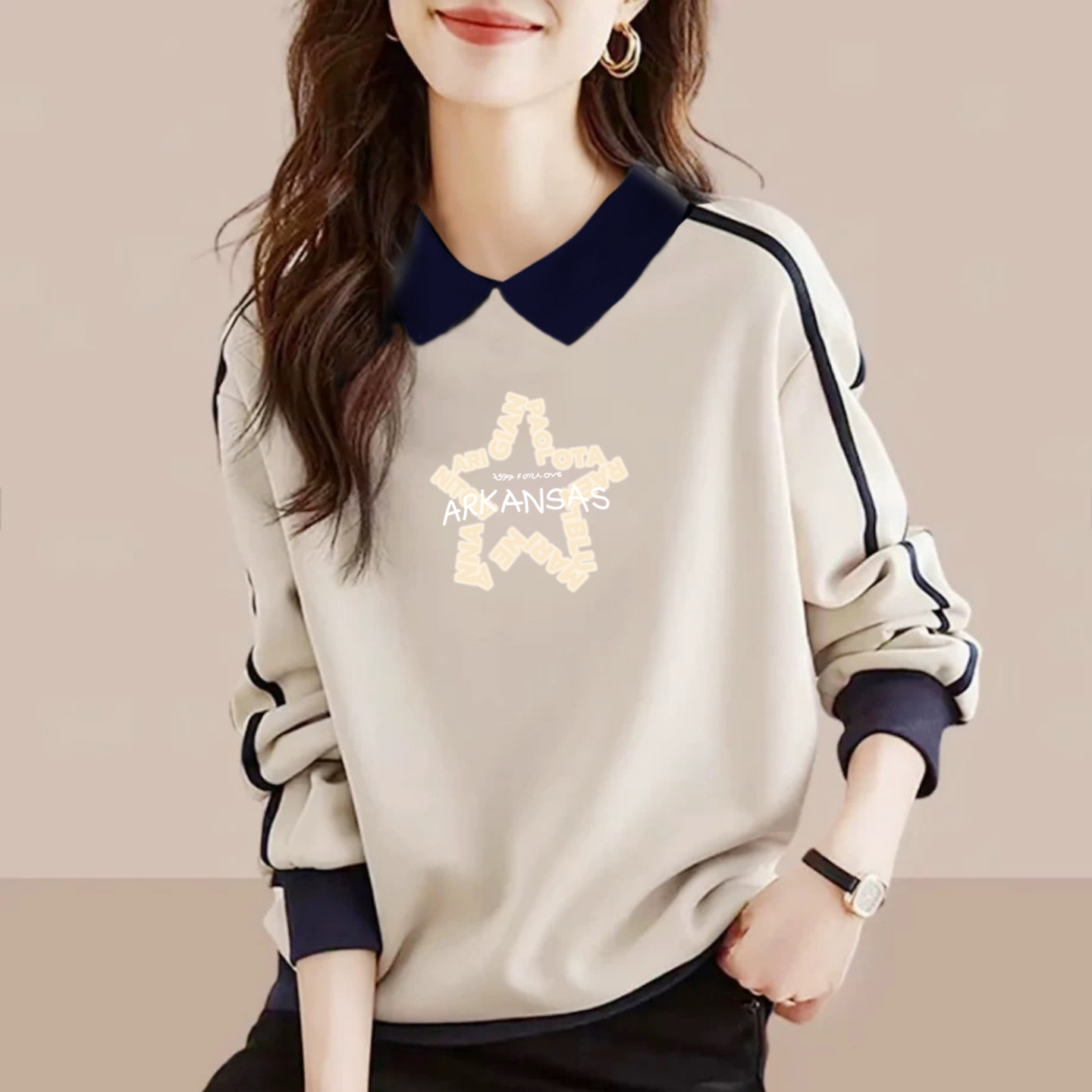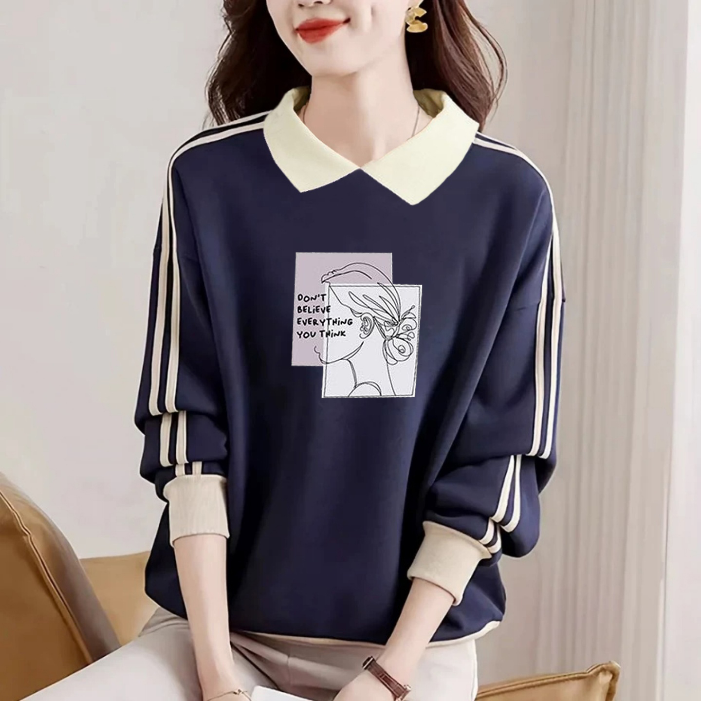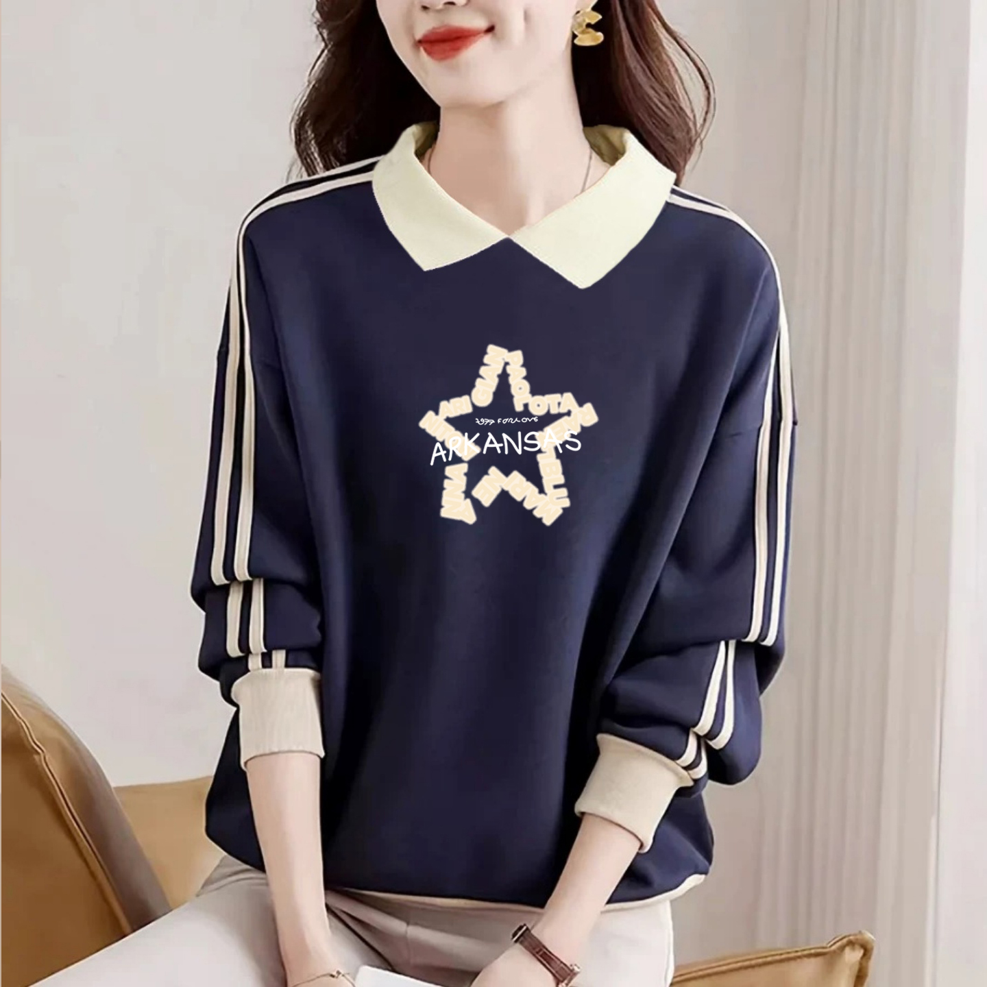 外贸高品质女装春秋纯棉卫衣女长袖打底衫宽松显瘦百搭POLO衫上衣