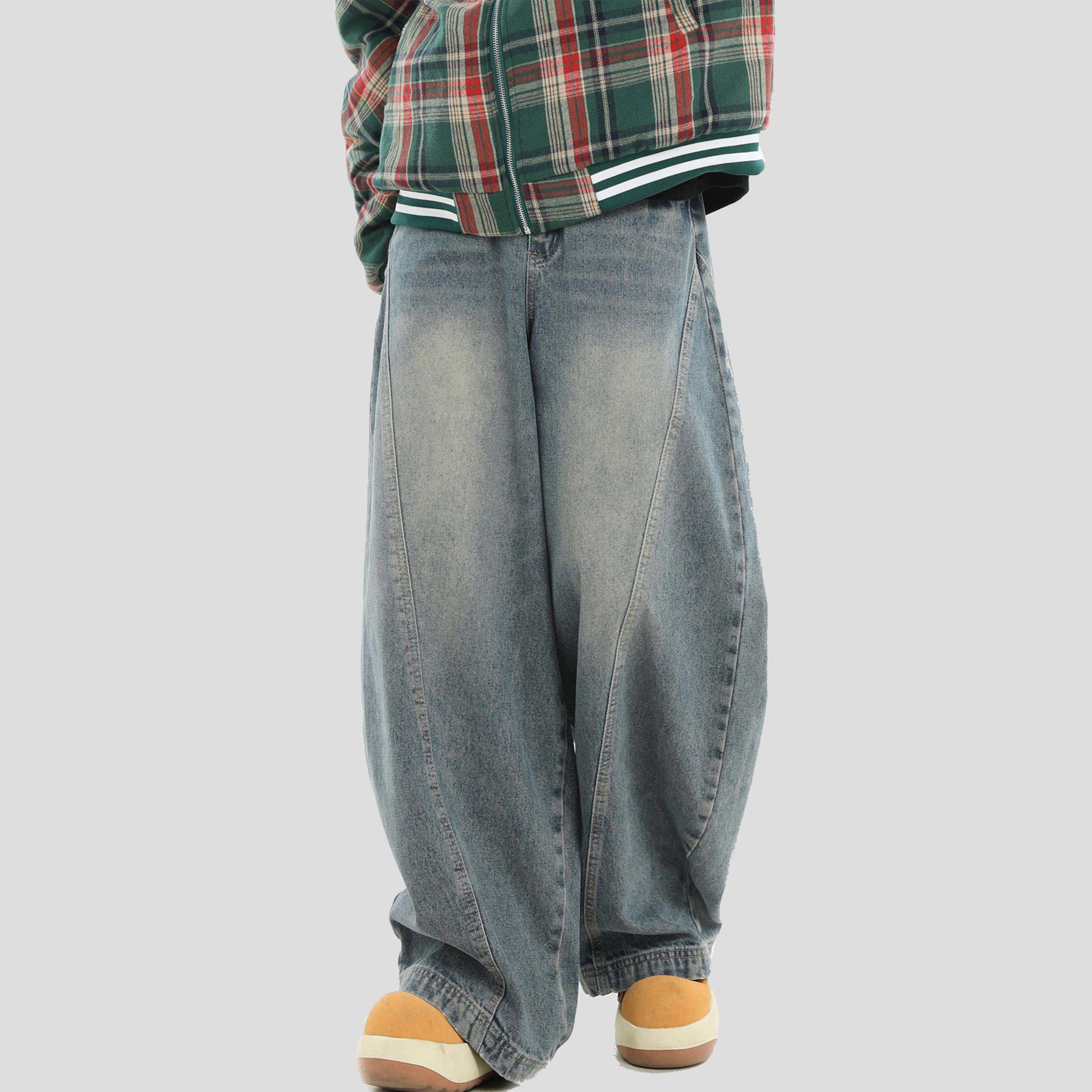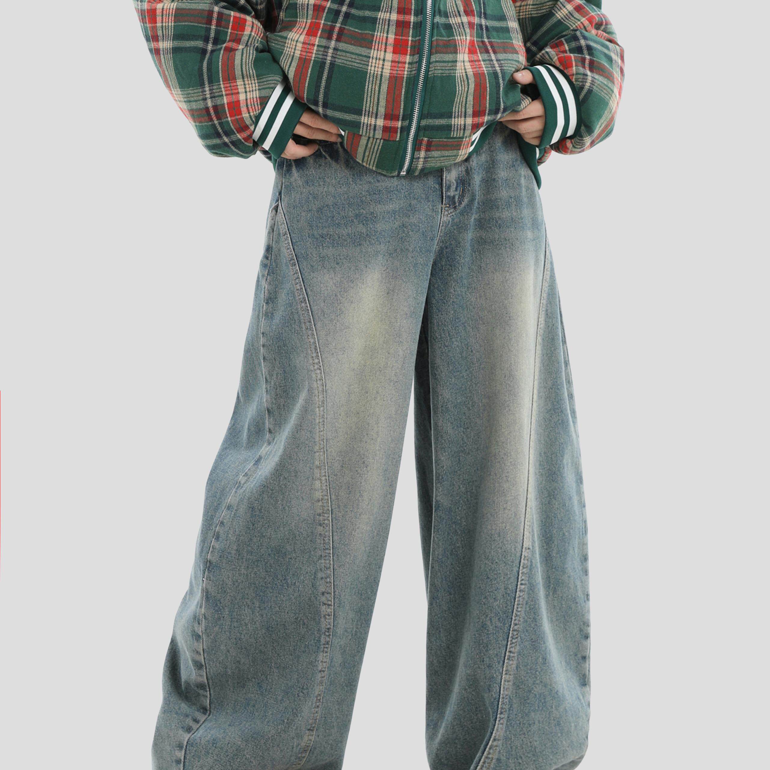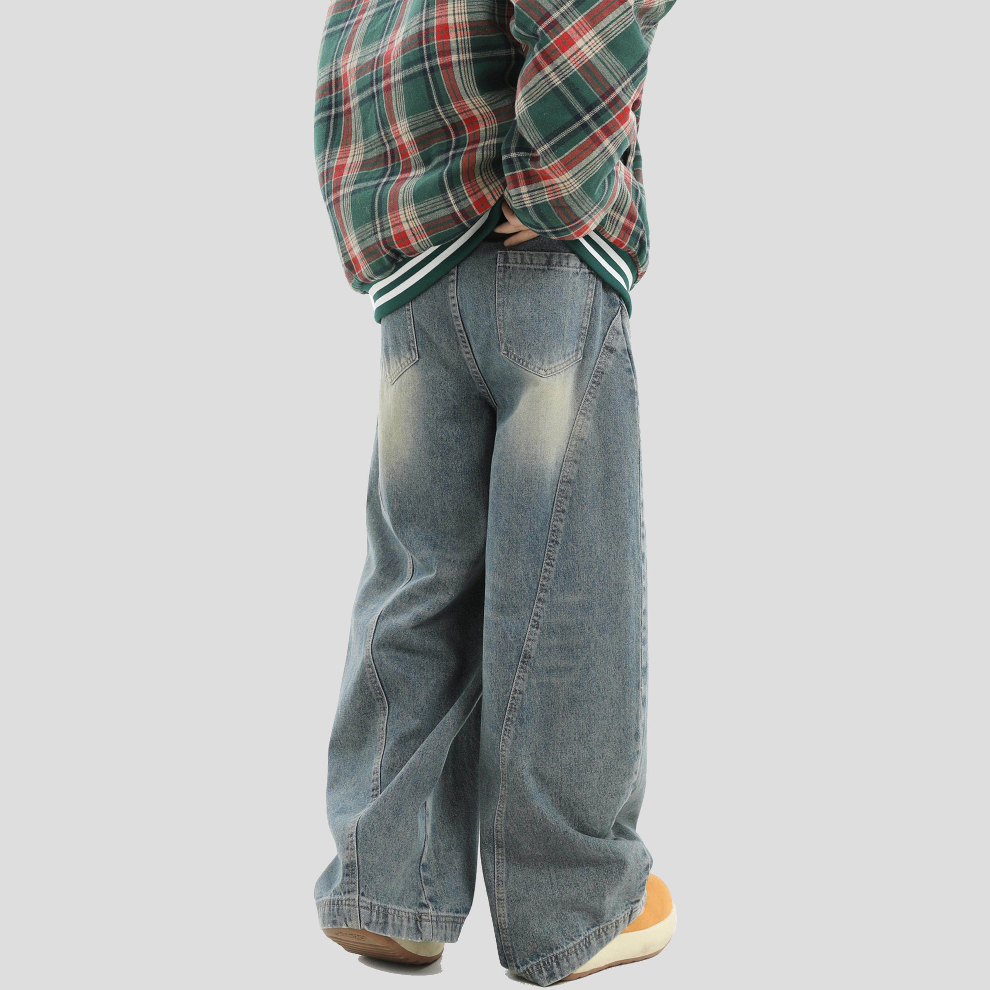 INSstudios 国潮牌情侣美式复古水洗浅蓝色牛仔裤宽松阔腿弯刀裤