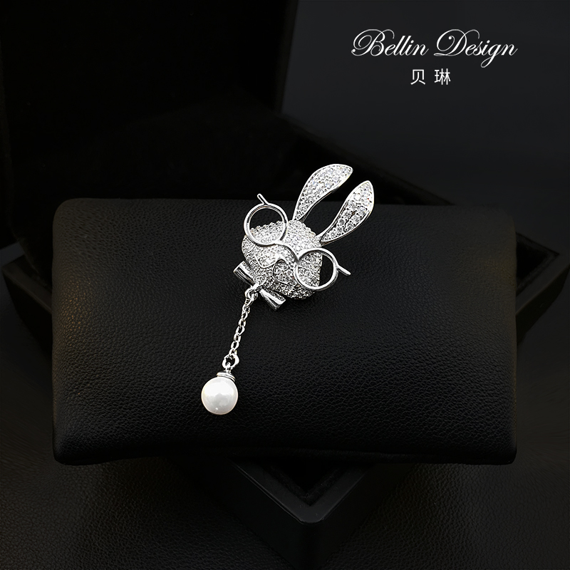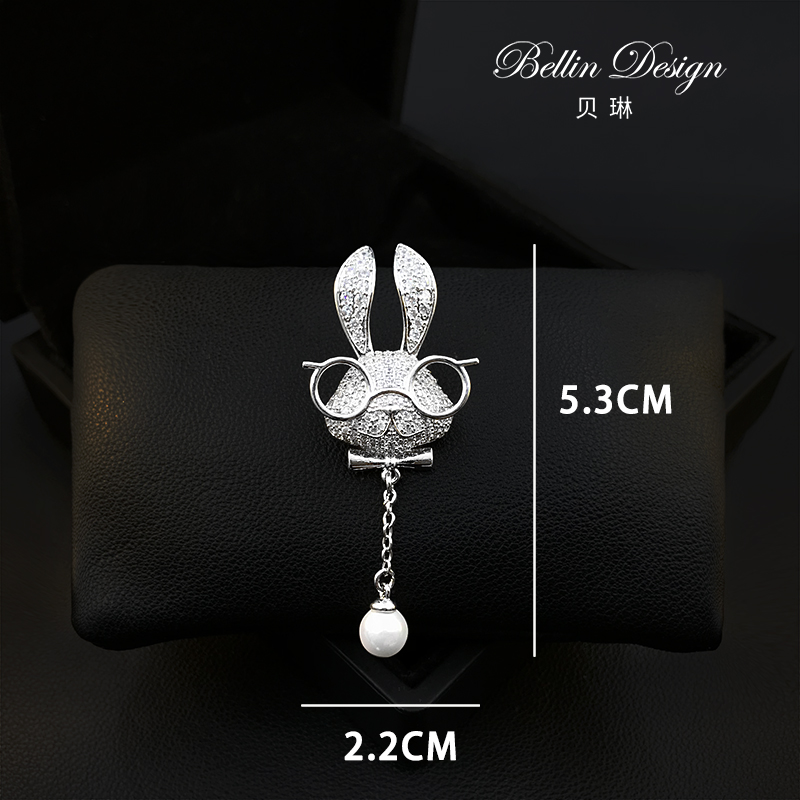戴眼镜的卡通兔子胸针女衬衫胸口免缝防走光扣时尚百搭配饰品5231
