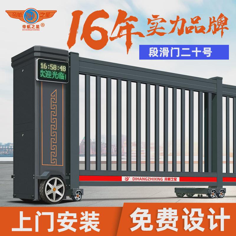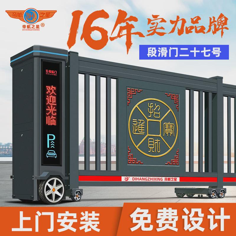 帝航铝合金伸缩工厂学校遥控无轨直线段滑门平移门电动伸缩门大门