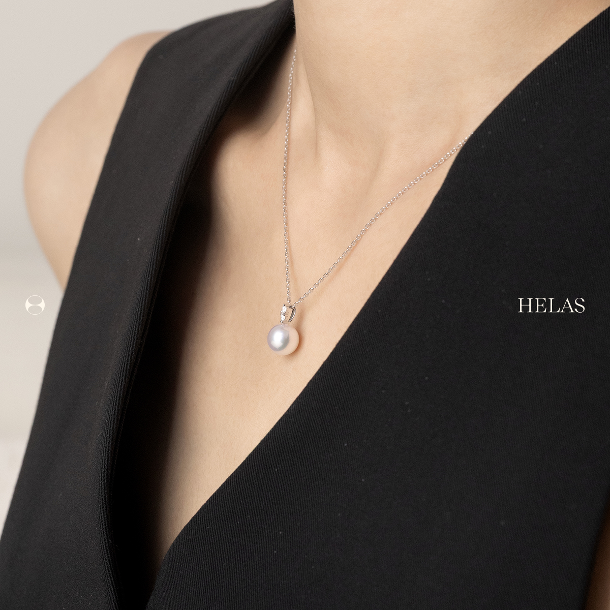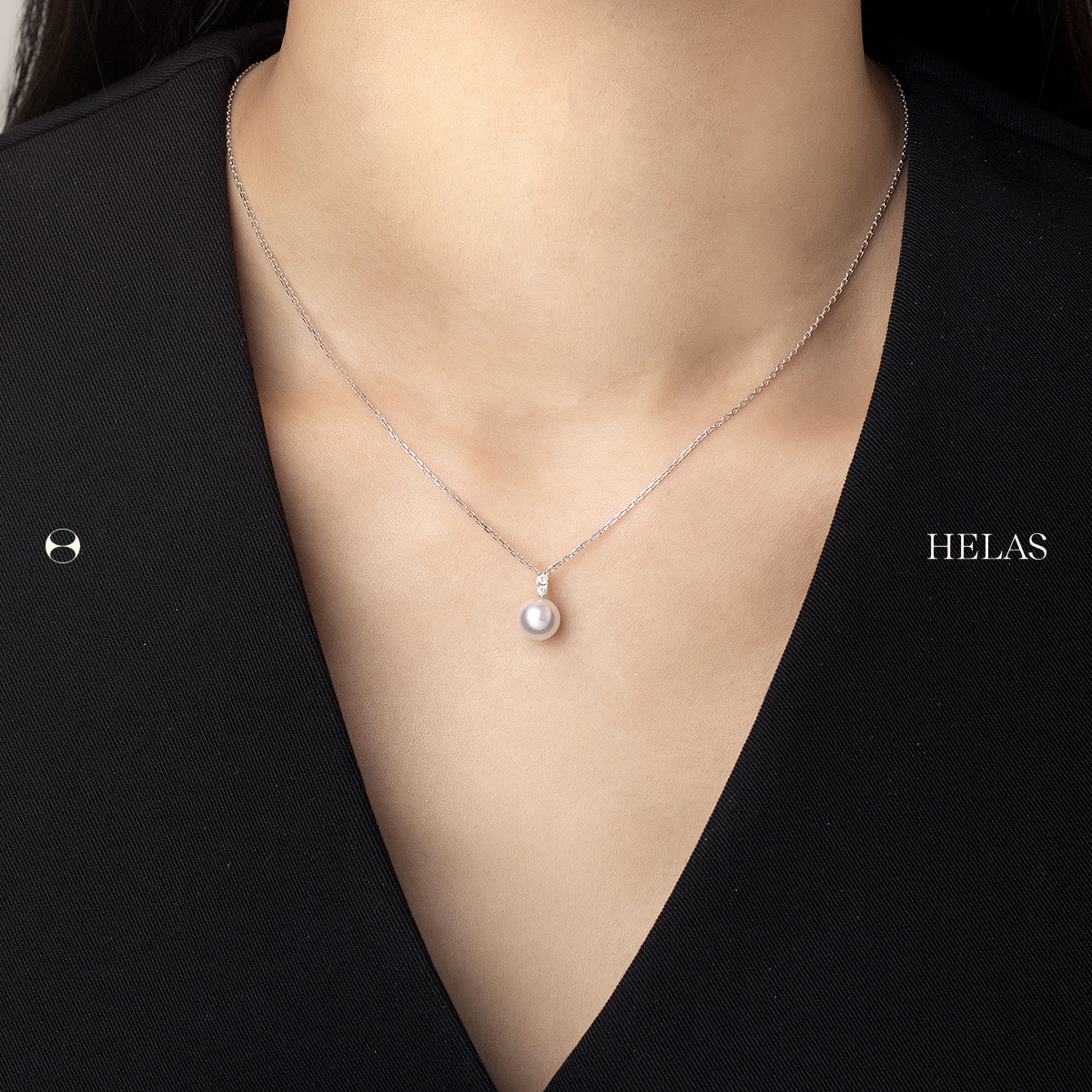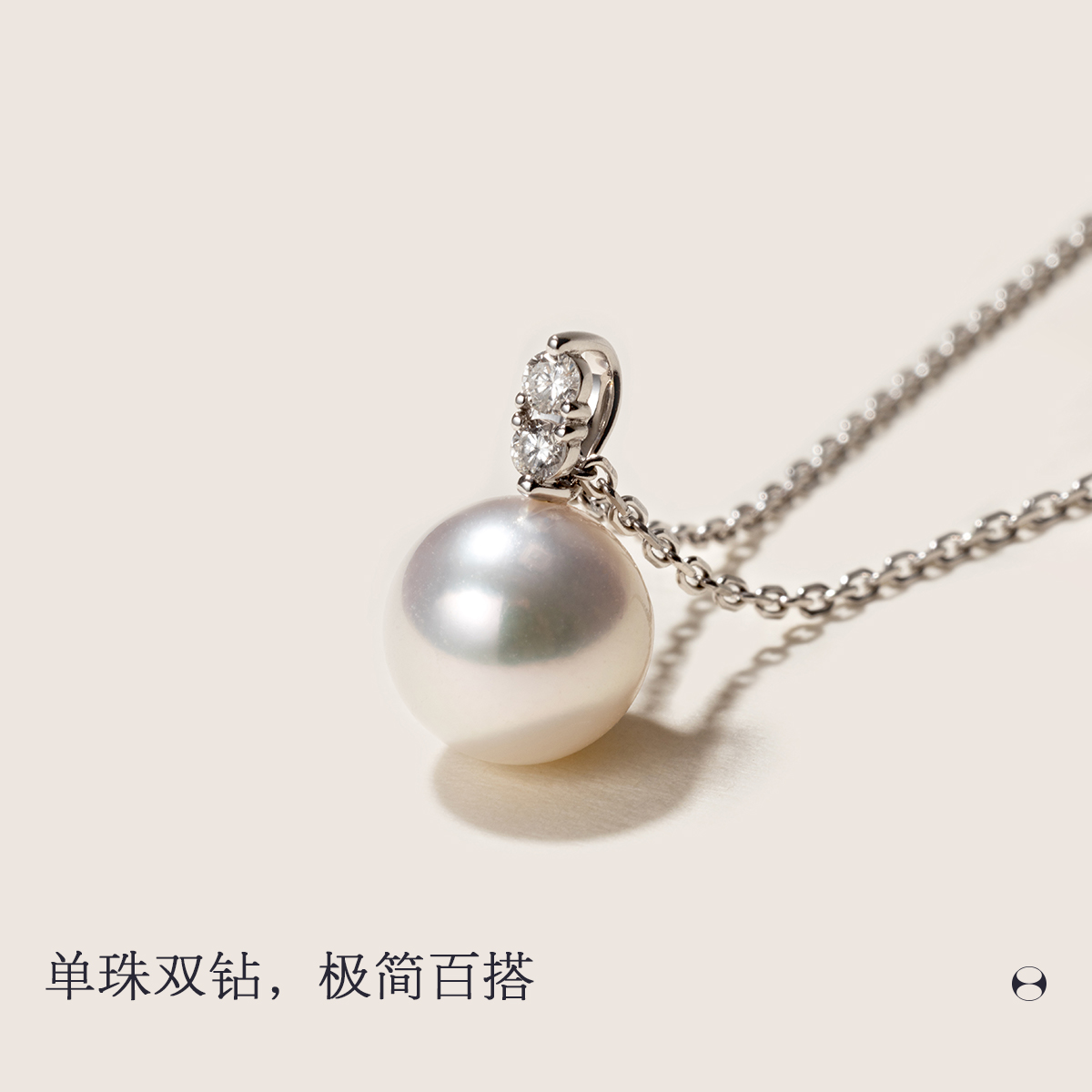 HELAS赫拉原点系列高亮Akoya海水珍珠项链女18K金白金色钻石吊坠