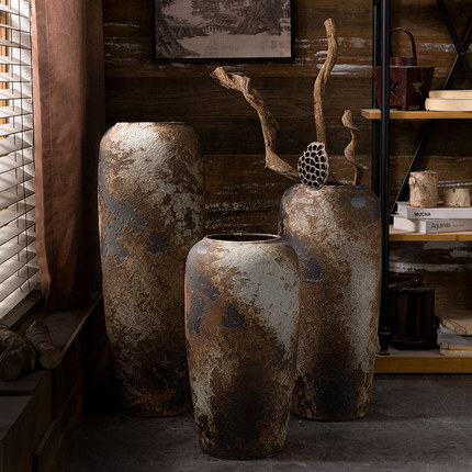 景德镇新中式陶瓷落地大花瓶庭院客厅摆件斑驳做旧粗陶罐摄影道具