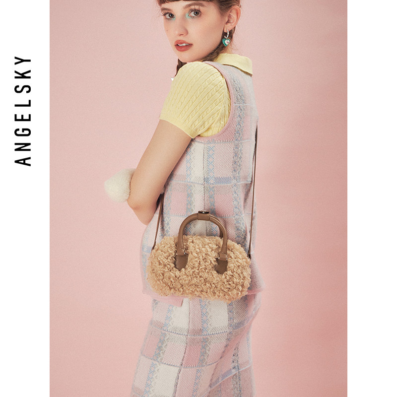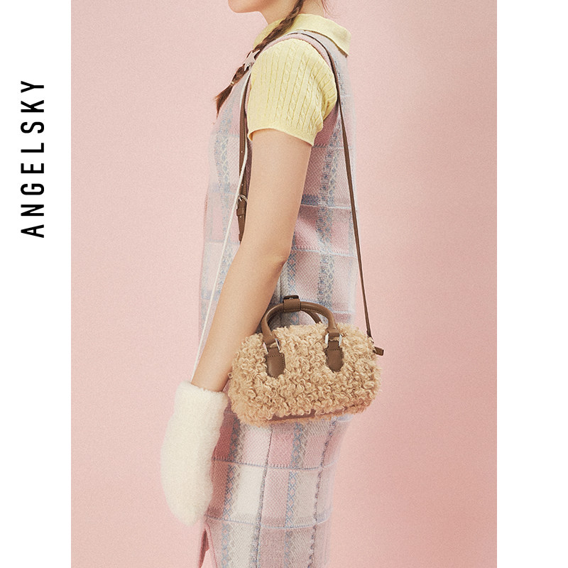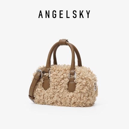 ANGELSKY波士顿包斜挎包女小众秋冬可爱毛绒包包冬季毛茸茸包包