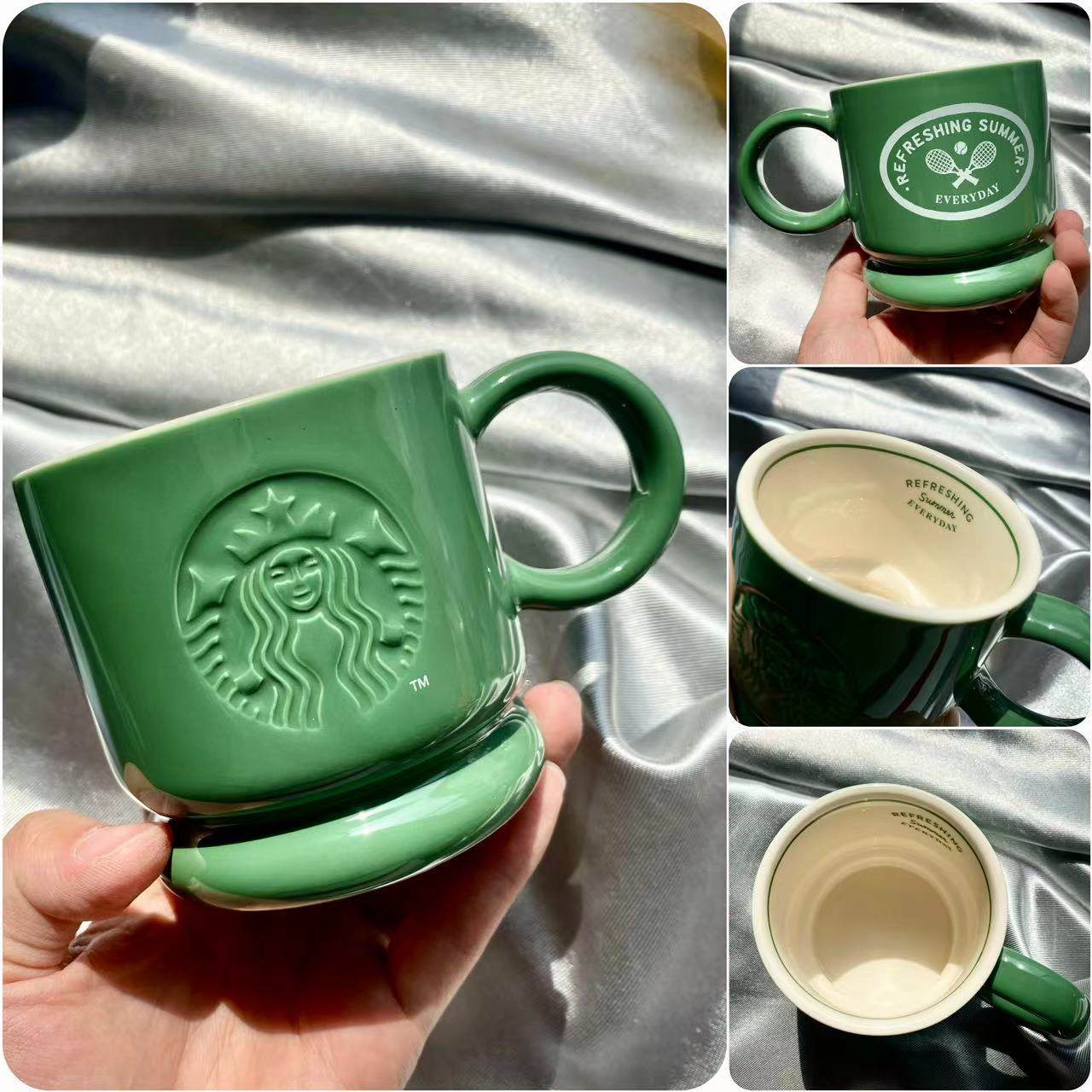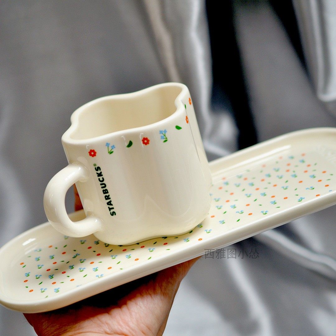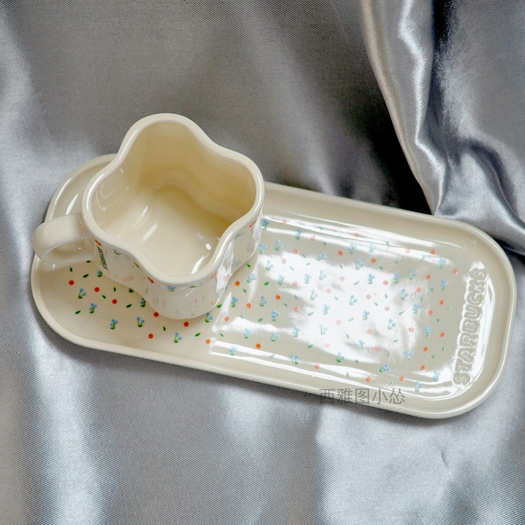 韩国星巴克奶油小碎花马克杯盘组