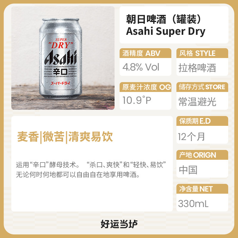 【朝日整箱】国产朝日拉格啤酒330ml*24罐整箱装黄啤