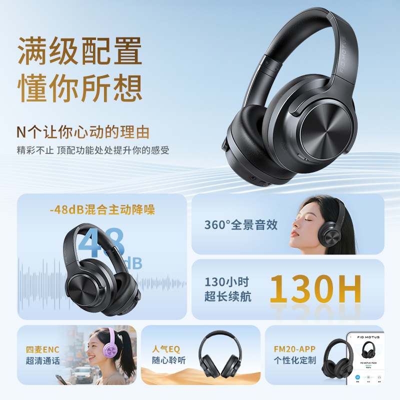 飞羽月FM20主动降噪头戴式蓝牙耳机无线超长续航游戏电竞2025新款