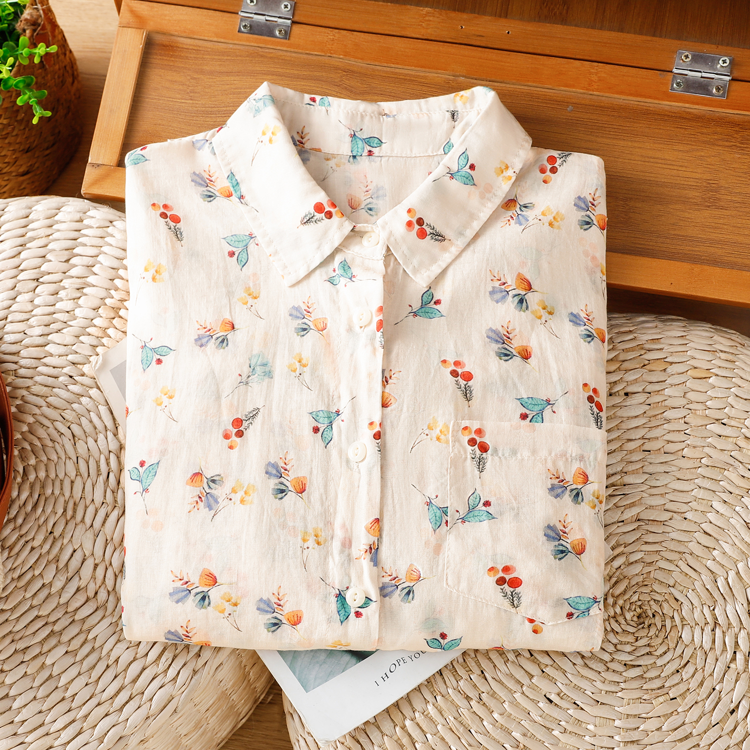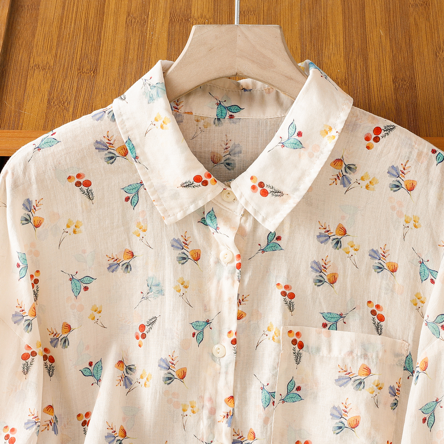女装胖mm大码显瘦上衣2025春秋复古碎花衬衫外套棉麻休闲宽松衬衣