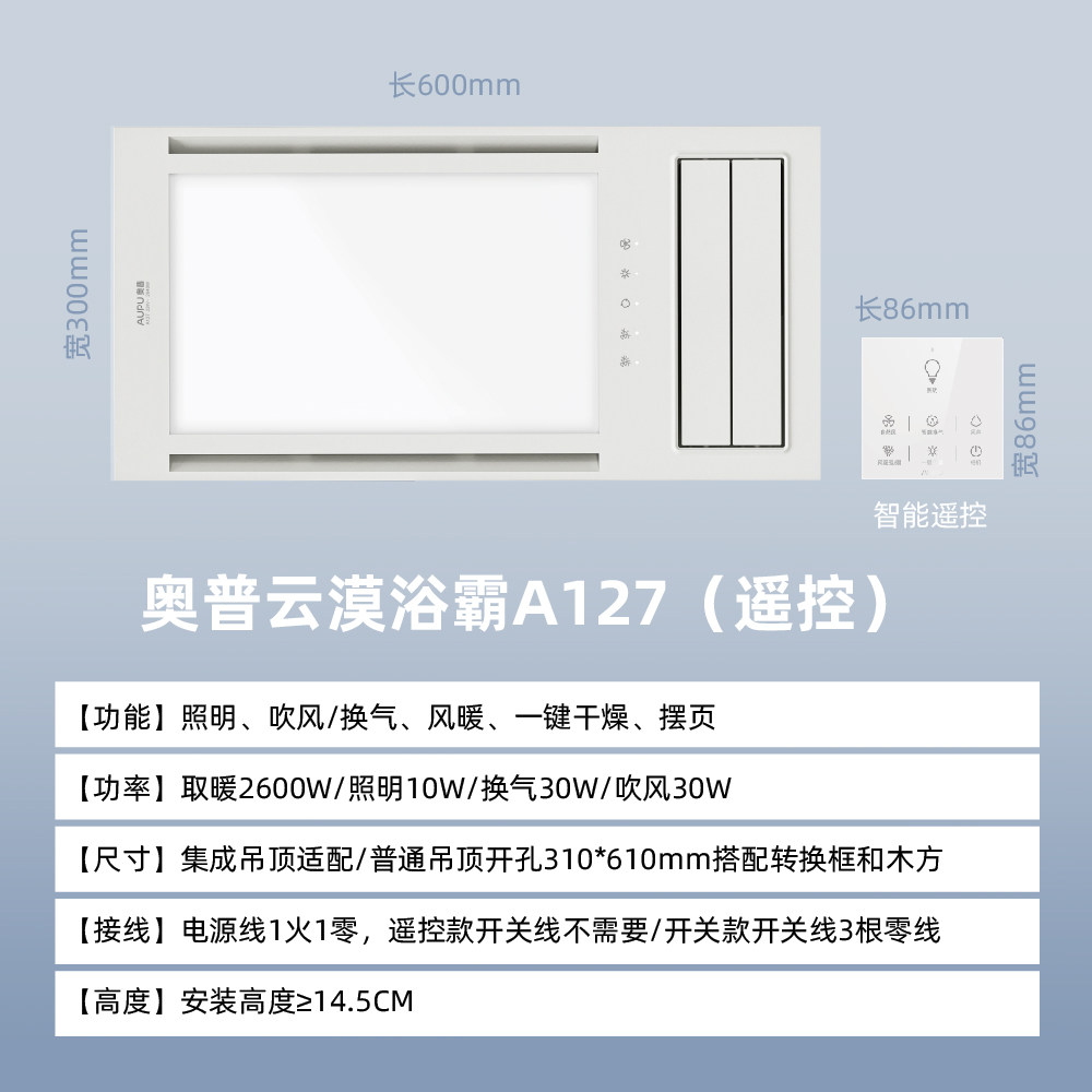 奥普(AUPU)A127暖风机浴霸 强弱风暖 取暖2600W大功率 摆页风暖