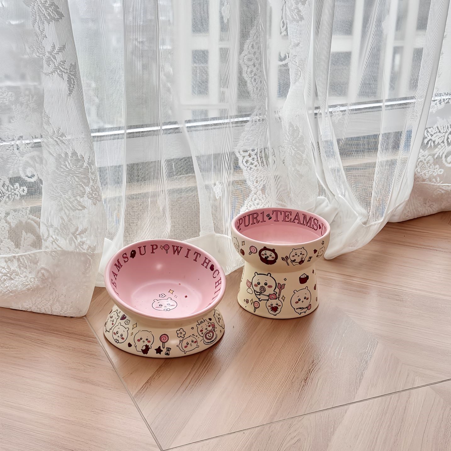 可爱卡通猫碗陶瓷慢食碗增高架 保护颈椎狗碗狗盆猫咪水碗宠物用