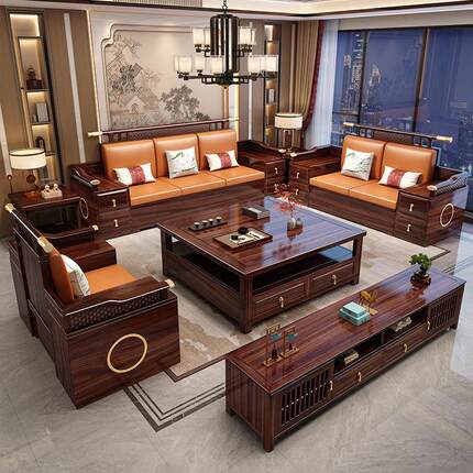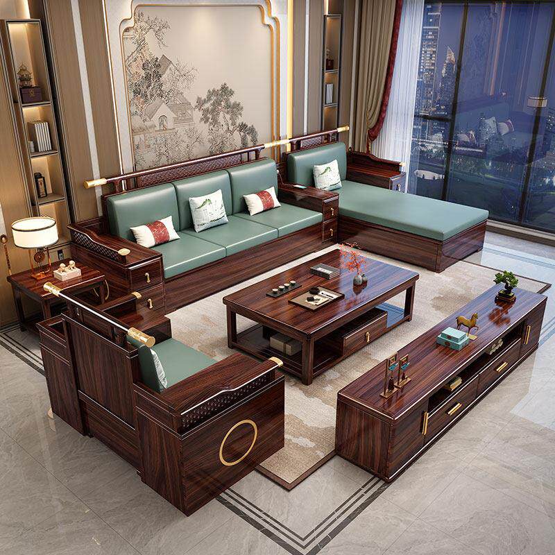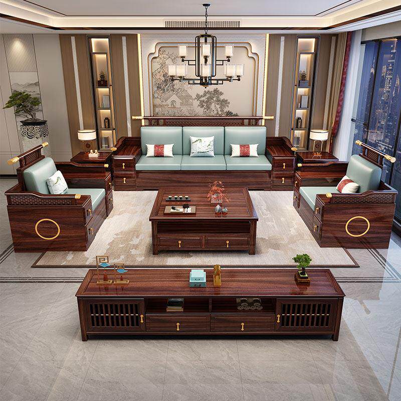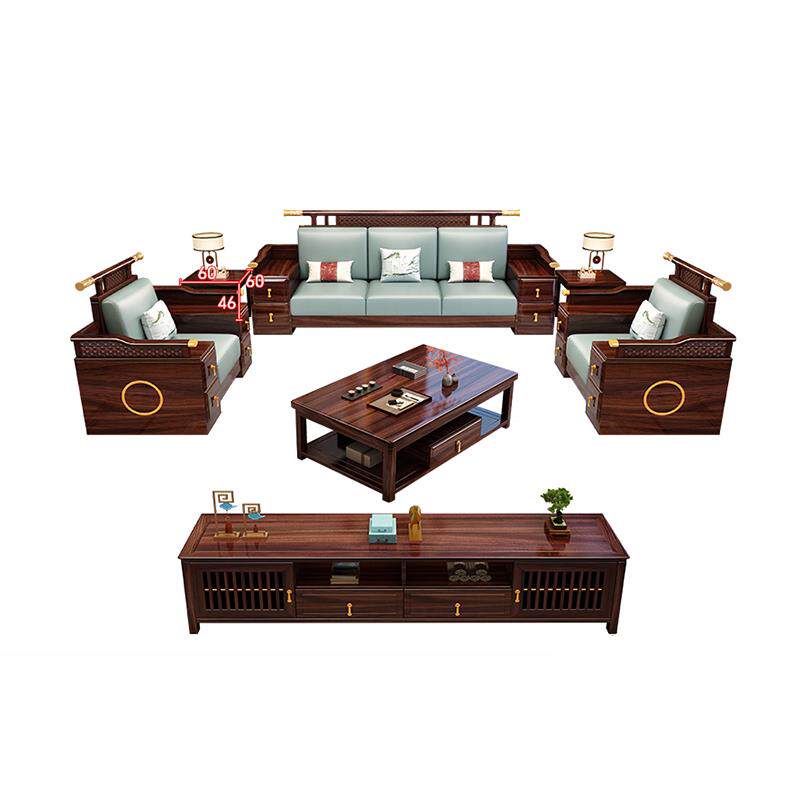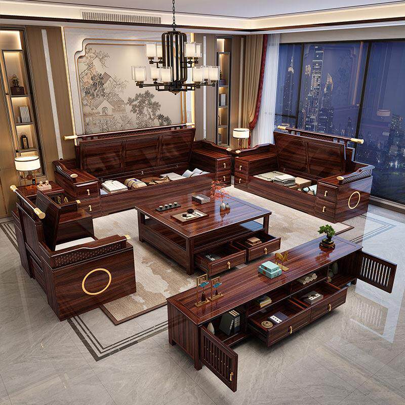 新中式乌金木实木沙发组合大小户型客厅冬夏两用别墅现代储物家俱