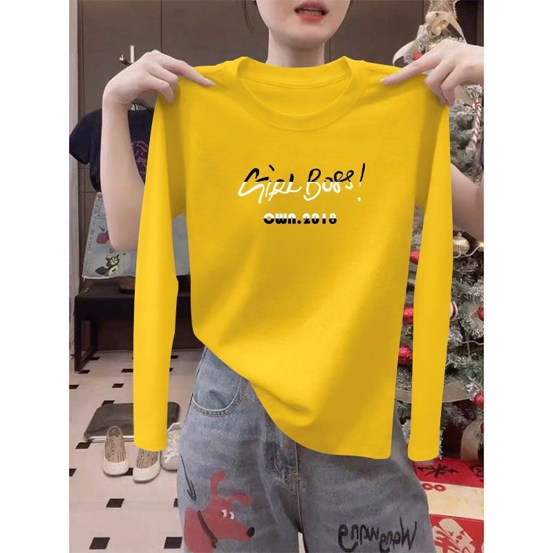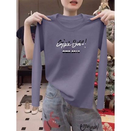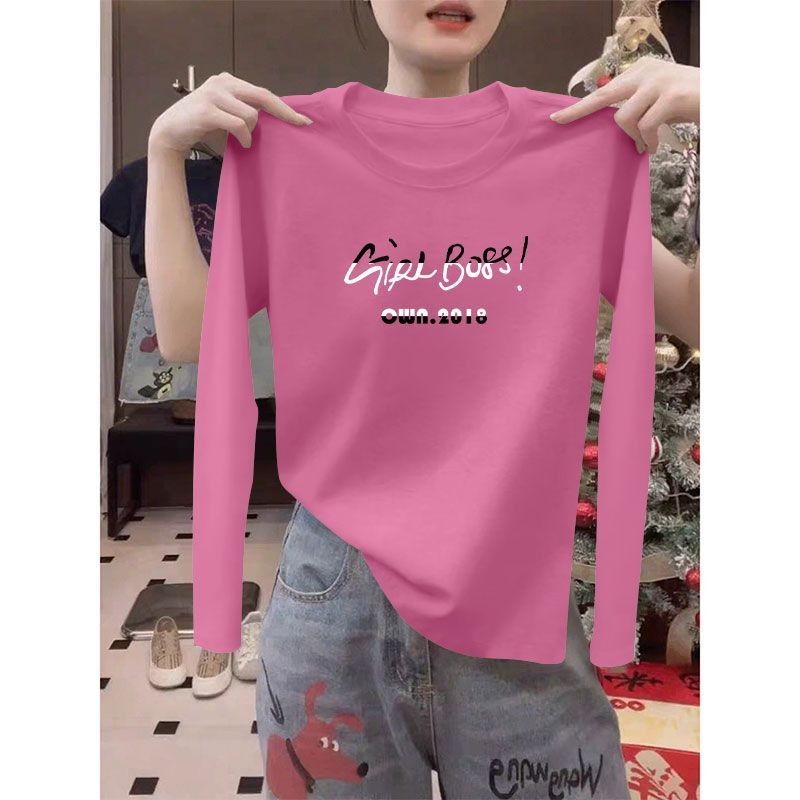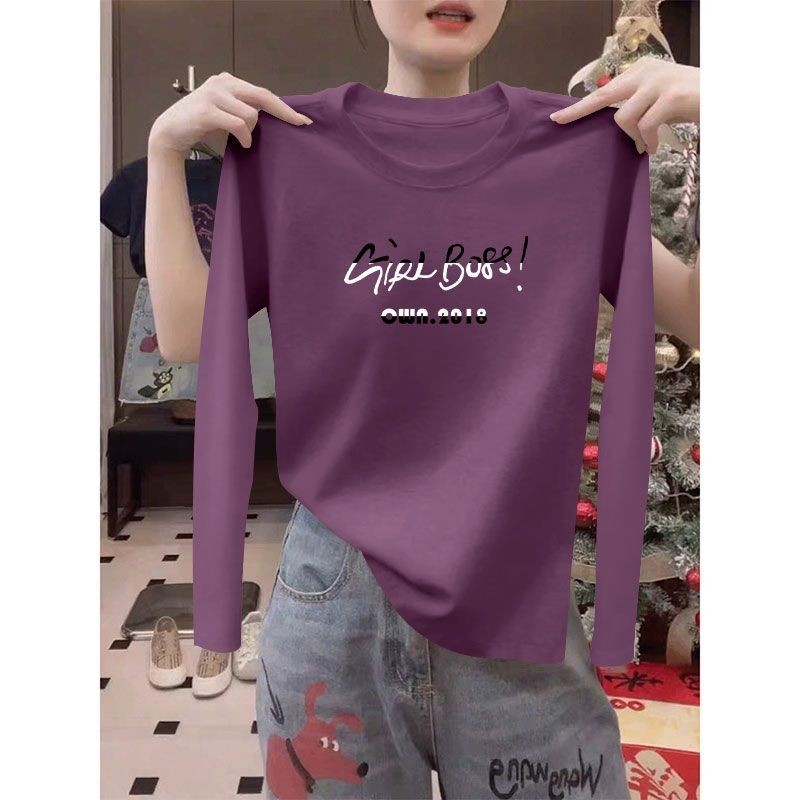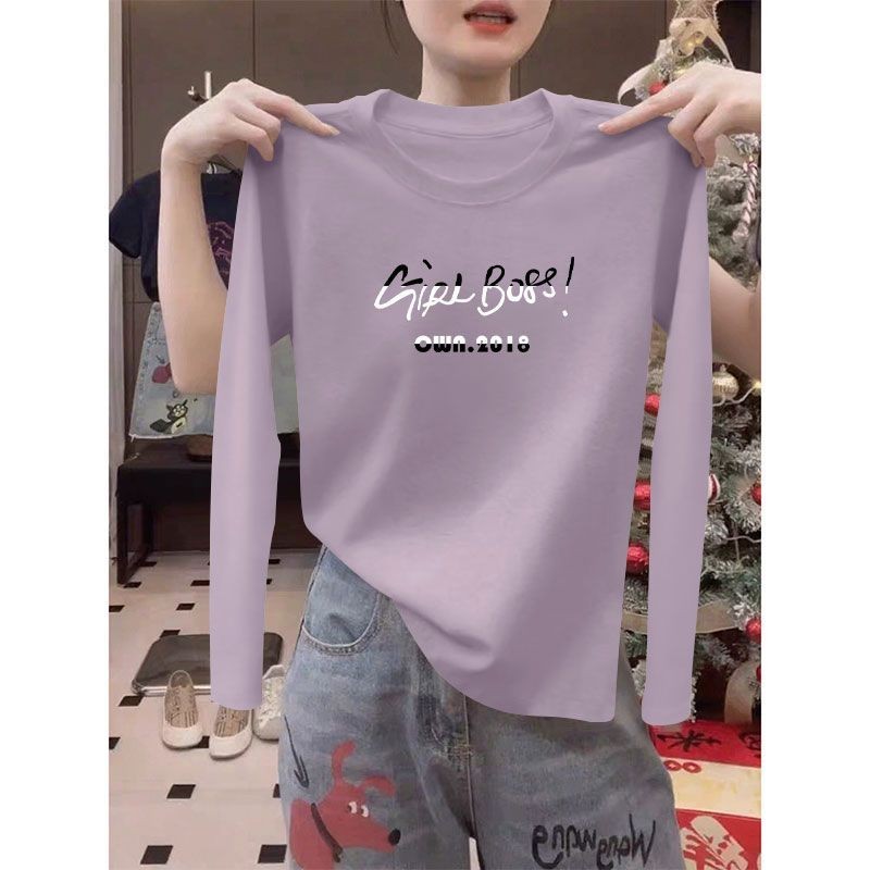 纯棉爆款纯棉长袖圆领T恤女韩版洋气潮流百搭宽松显瘦ins休闲上衣