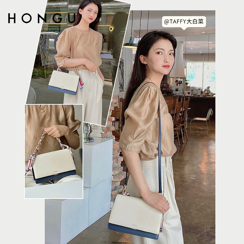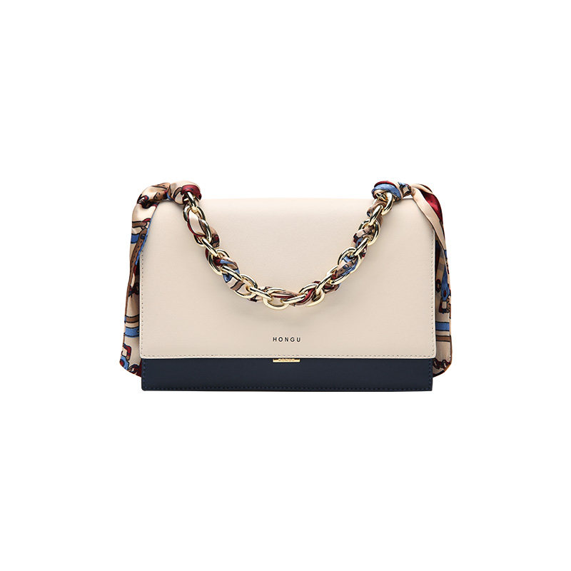 红谷女包2025新款斜挎小包时尚丝巾小方包真皮包包链条手提单肩包