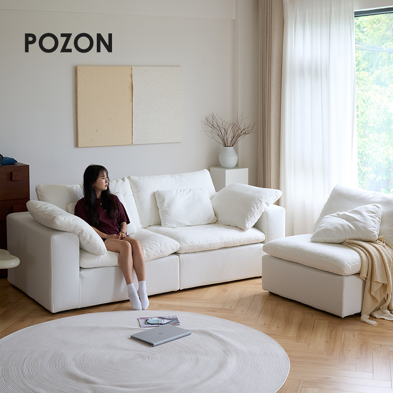 Cloud云沙发 棉麻亚麻直排白色奶油系布艺客厅组合侘寂风羽绒模块