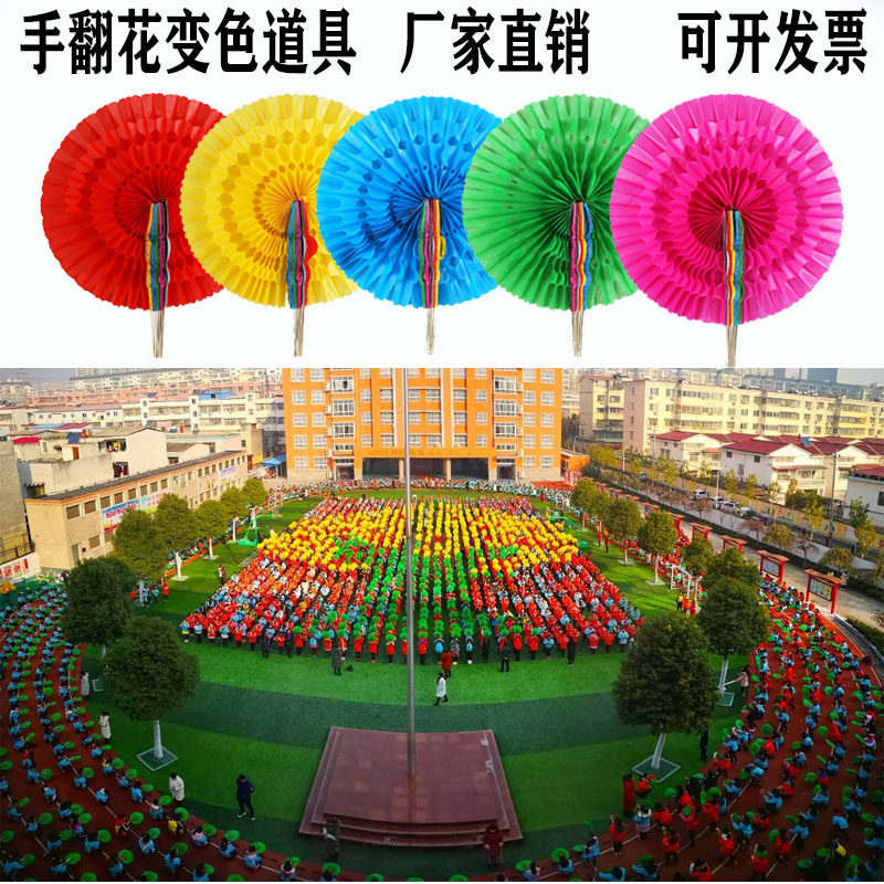 加厚手翻花球变色扇子舞蹈道具大型团体操表演道具运动会开幕式道