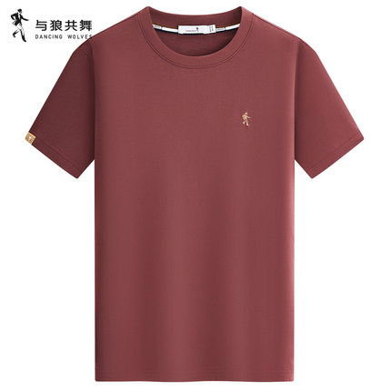 【100%纯棉】与狼共舞圆领短袖T恤男2025夏季新款刺绣纯色透气短T