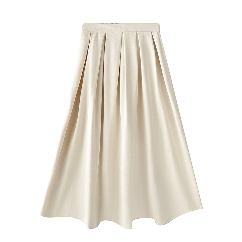 米白毛呢百褶裙半身裙女秋冬季设计感伞裙中长款小个子高腰a字裙