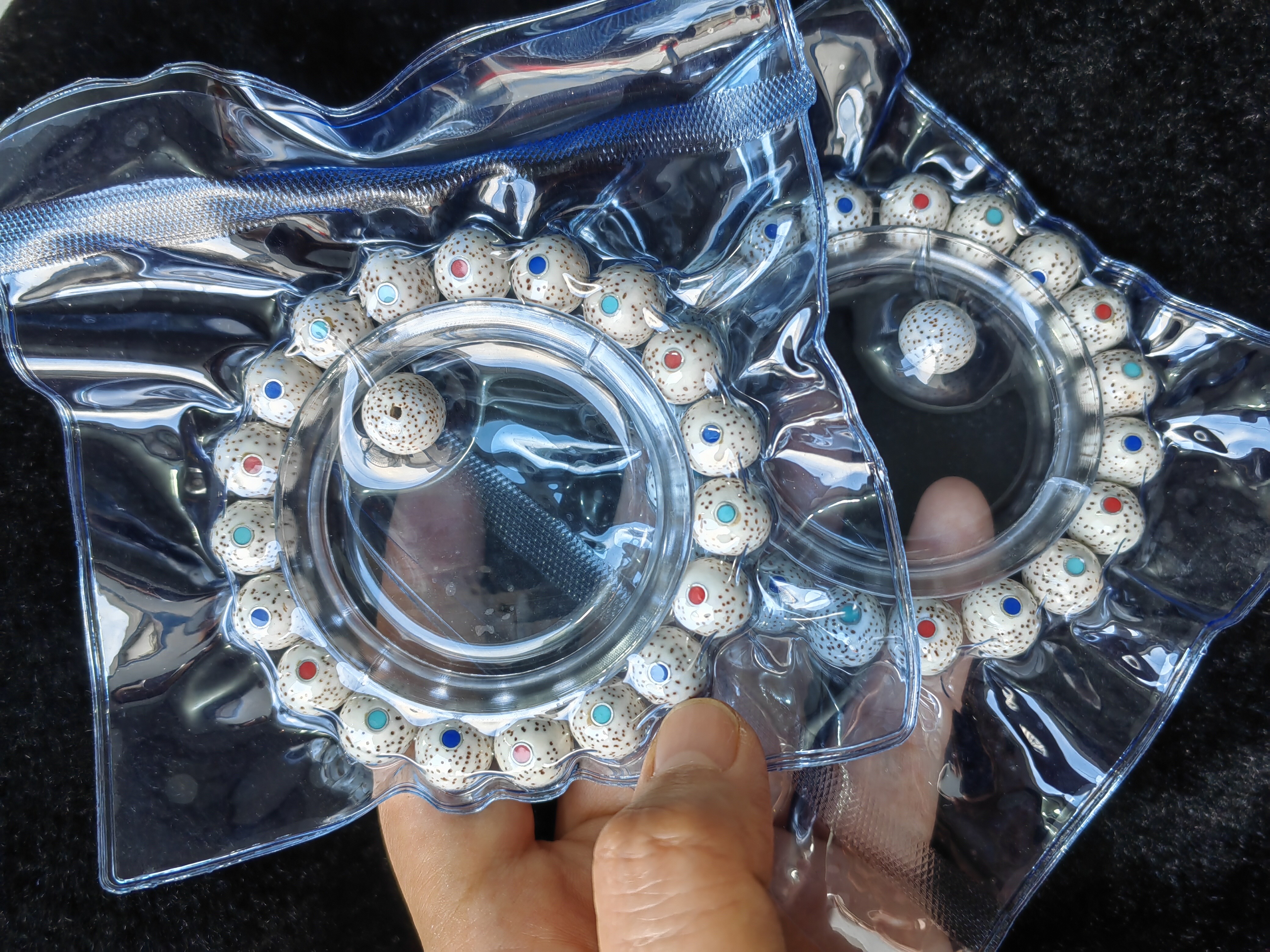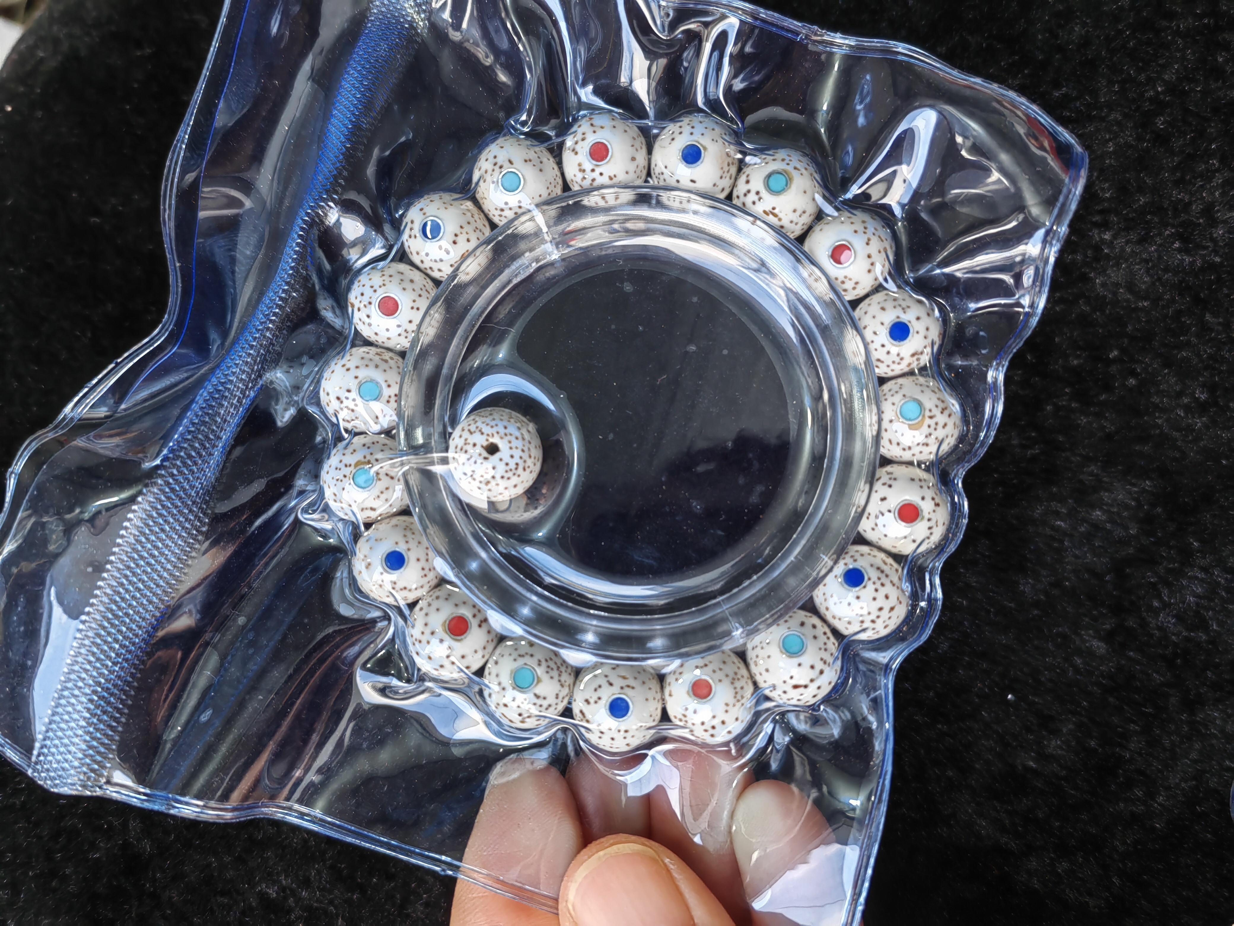 海南天然星月菩提12圆珠银管多宝镶嵌单圈手串高密顺白佛珠