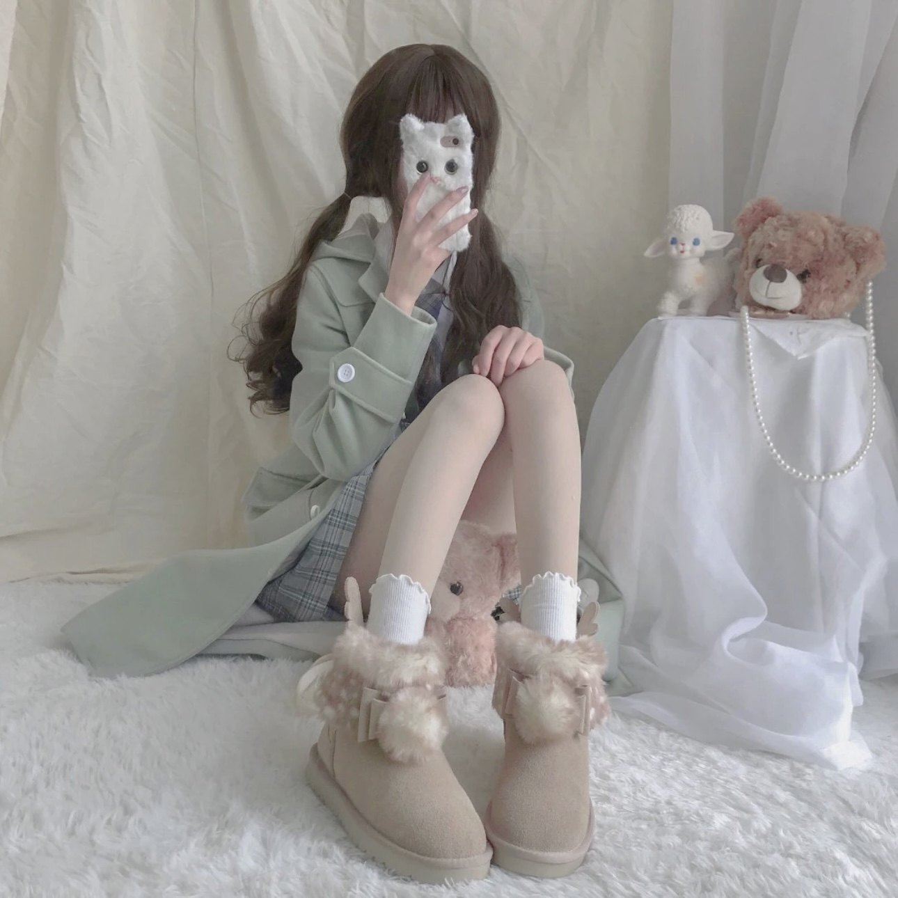 【现货】小麋鹿原创短款防滑雪地靴女加绒加厚日系可爱lolita鞋