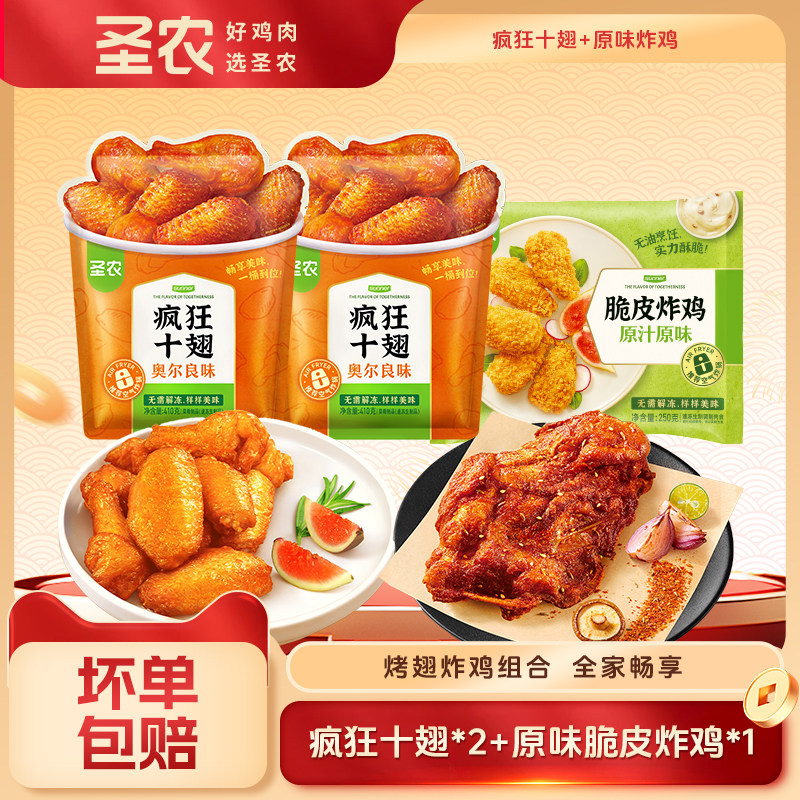 圣农疯狂十翅奥尔良味冷冻免腌半成品鸡翅食材炸鸡生炸孜然鸡架组