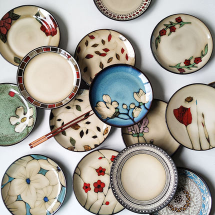 日式复古餐具盘子陶瓷餐盘菜盘异域风情深盘平盘家用水果盘微瑕