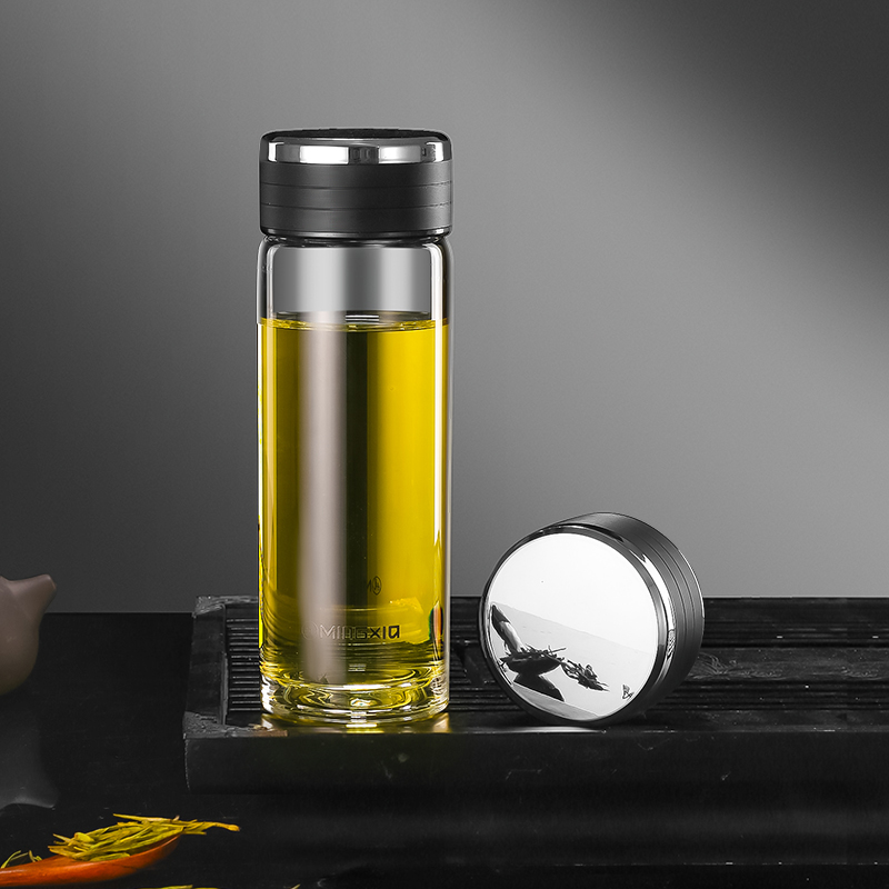 明霞玻璃杯男士家用水杯高档透明便携茶水分离泡茶杯子个人专用