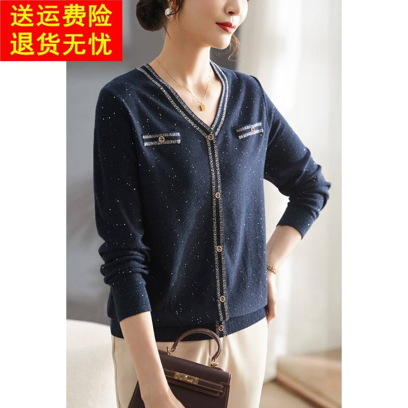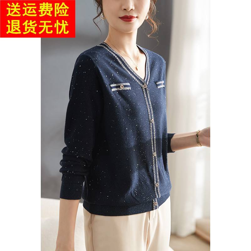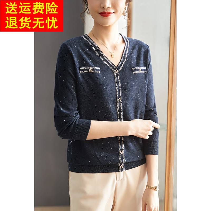 妈妈春装薄款洋气针织小衫春秋时尚打底衫2025新款中老年早秋小衫