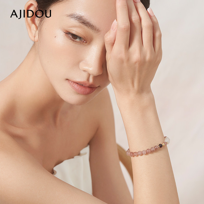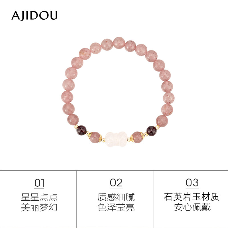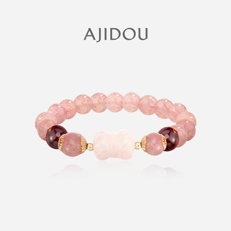 阿吉豆AJIDOU石英岩玉手串石榴石粉色水晶招桃花招财百搭手链饰品