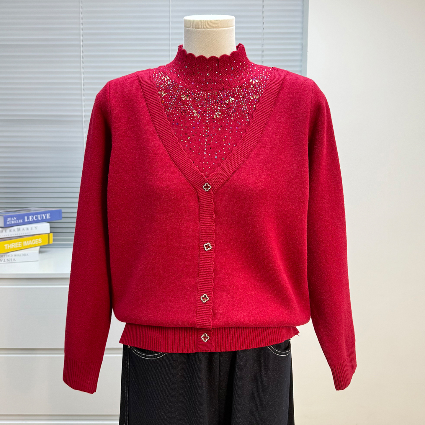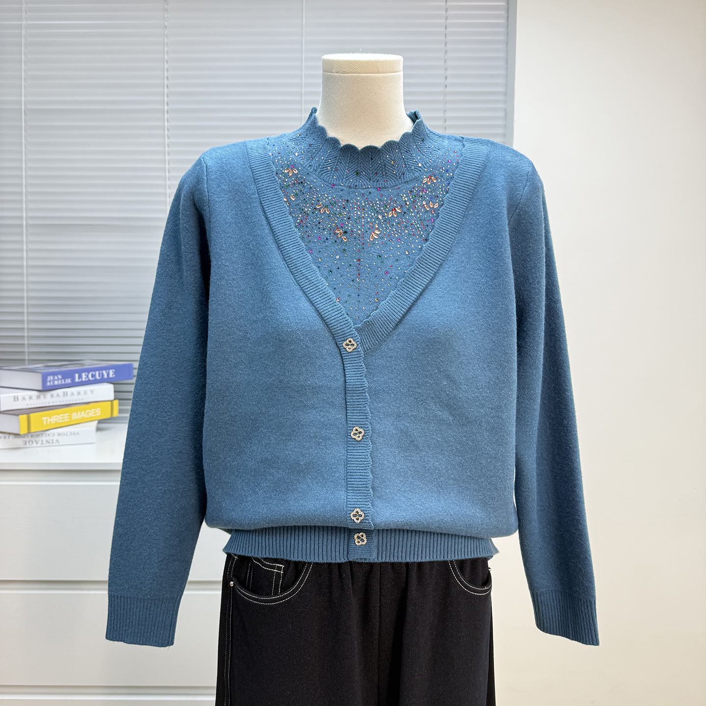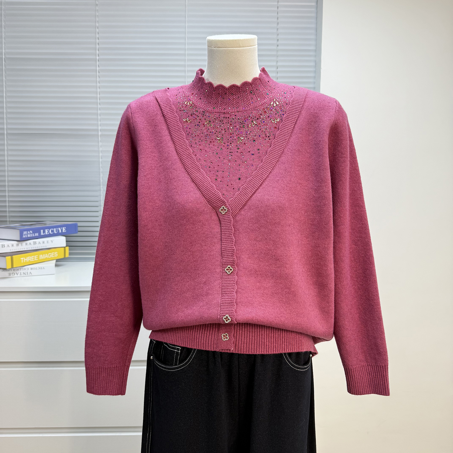 妈妈装衣服加绒毛衣女冬季一体绒中老年人加厚假两件打底宽松上衣