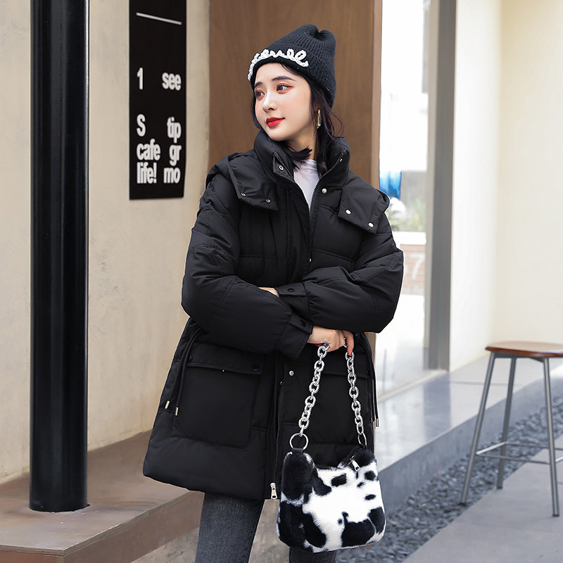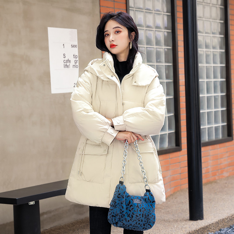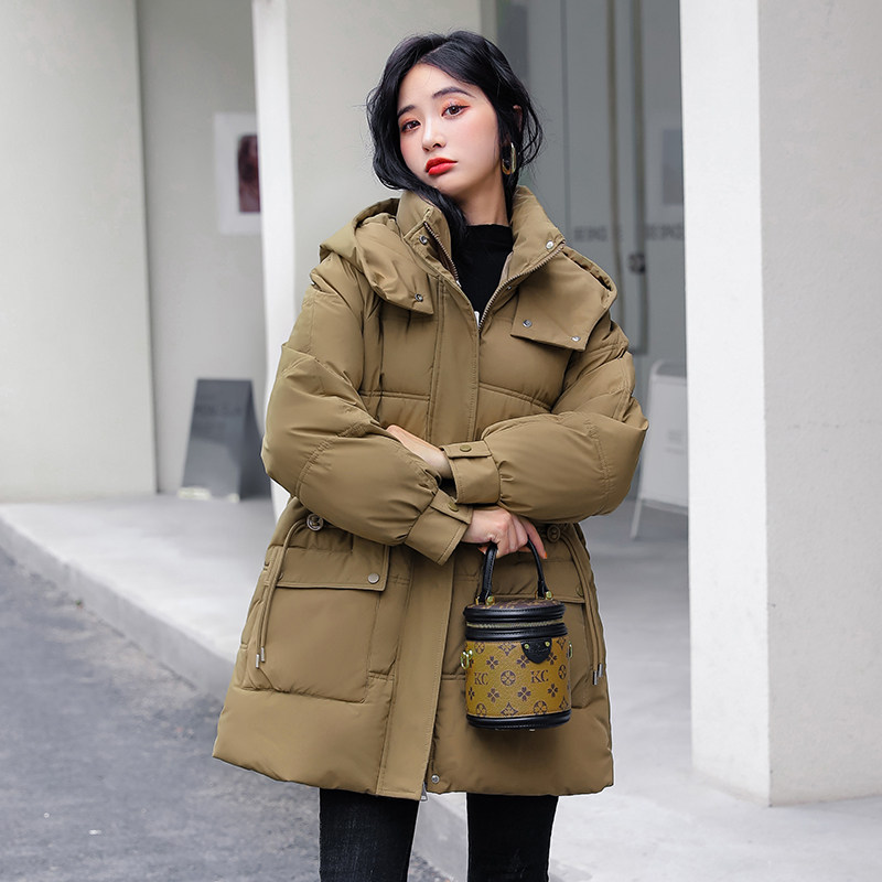 2024冬季新款女士中长款棉衣羽绒棉加厚时尚爆款修身收腰连帽女装