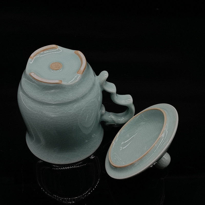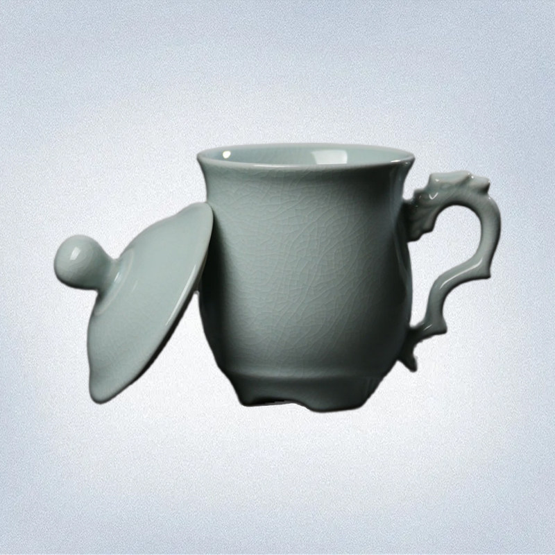 杨聚斌窑天然原矿开片冰裂釉汝瓷上合峰会专用龙头杯茶具特色礼品