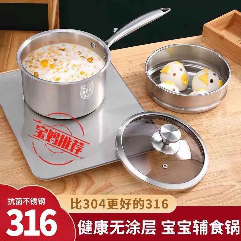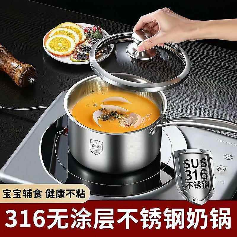 奶锅316不锈钢食品级婴儿辅食锅不粘锅加厚蒸煮牛奶锅一体小汤锅