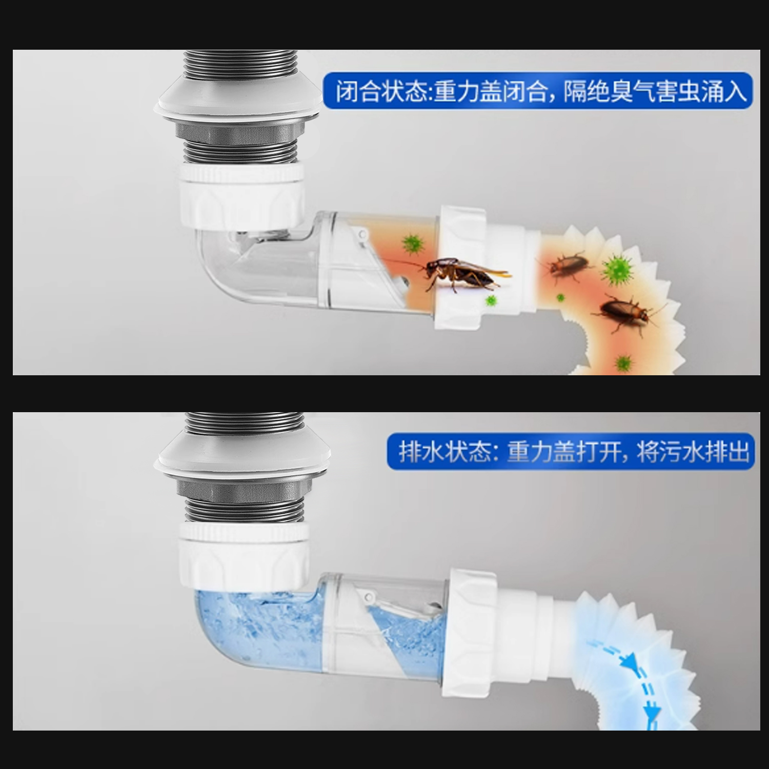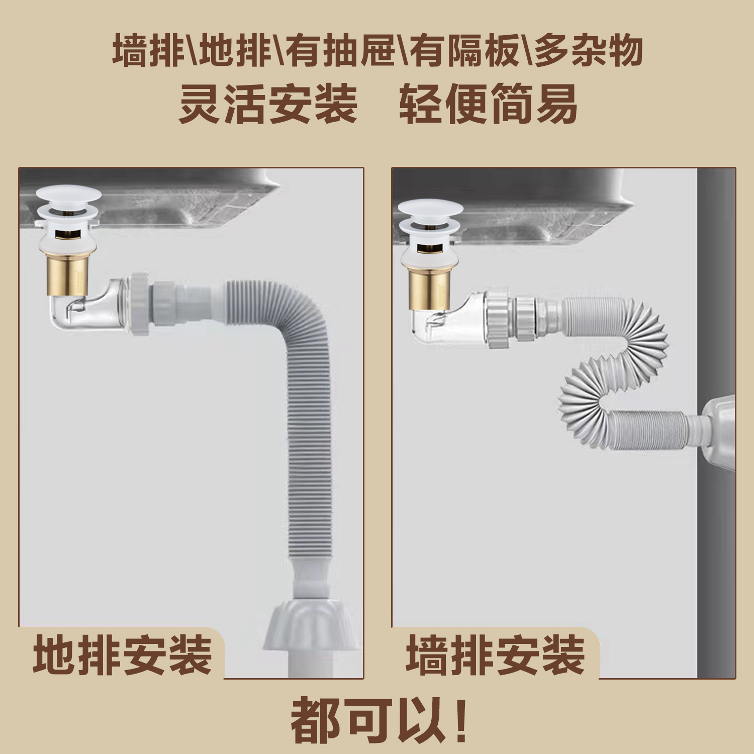 全铜白色弹跳下水器洗手盆洗面盆下水管按压式防堵防臭墙排短款