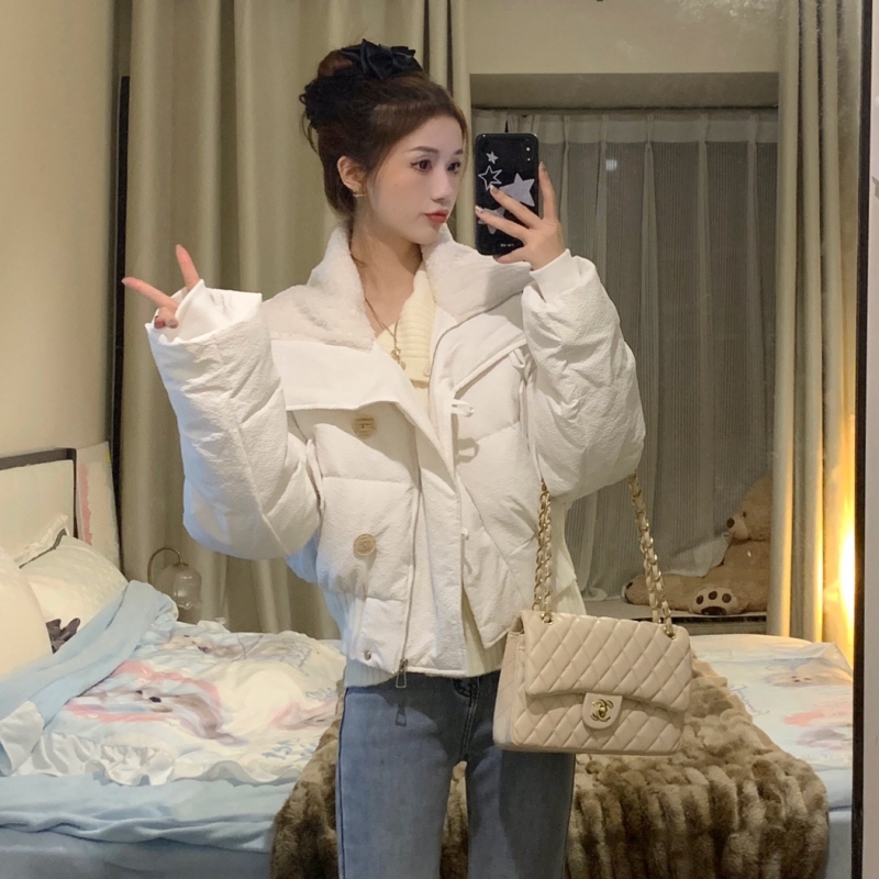 大小姐羊羔毛翻领短款外套女2025秋冬季新品法式小众设计羽绒棉服