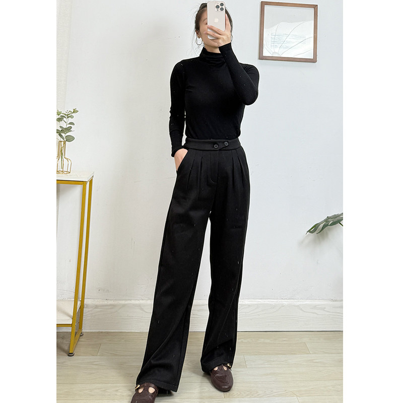 加绒加厚人字纹直筒裤女秋冬2025新款高腰毛呢裤子窄版阔腿裤长裤