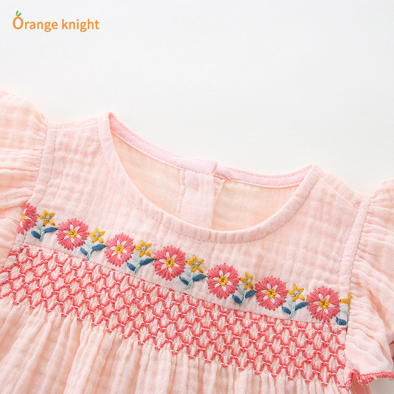婴儿夏装连体衣初生女宝无袖背心哈衣a类纯棉公主满月百天衣服ins