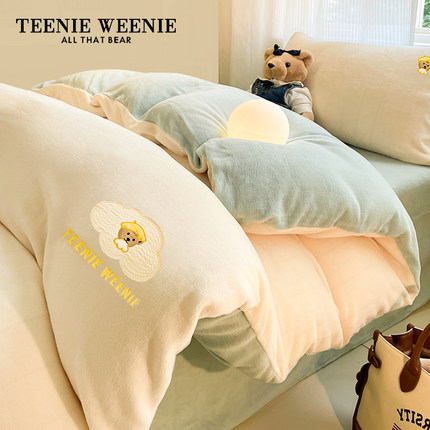 TeenieWeenie奶油风牛奶绒四件套加厚珊瑚法兰宝宝绒被套床单床笠