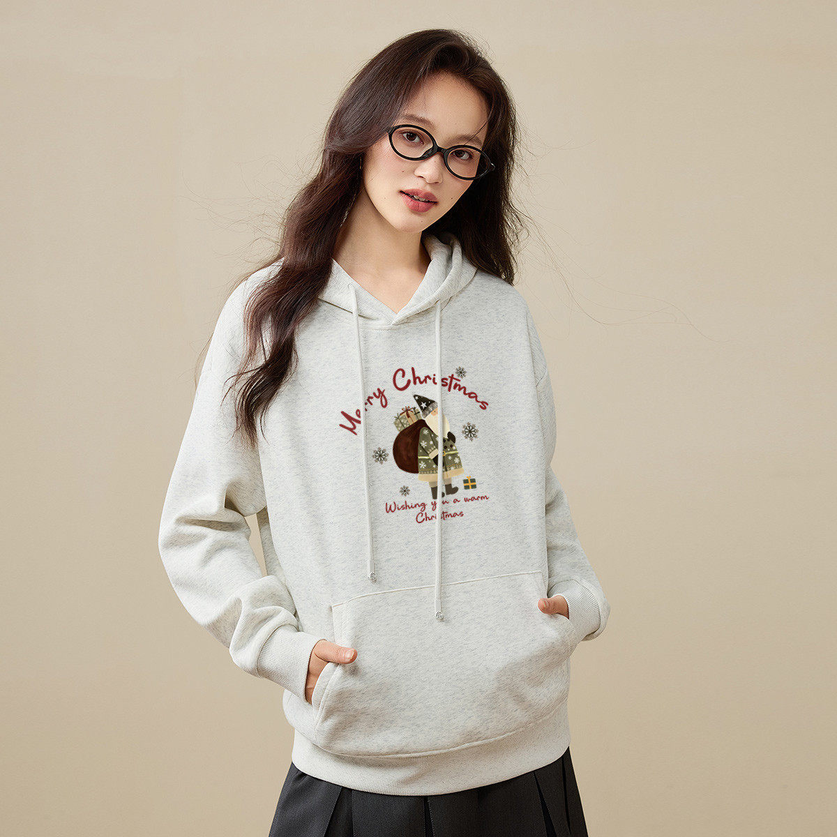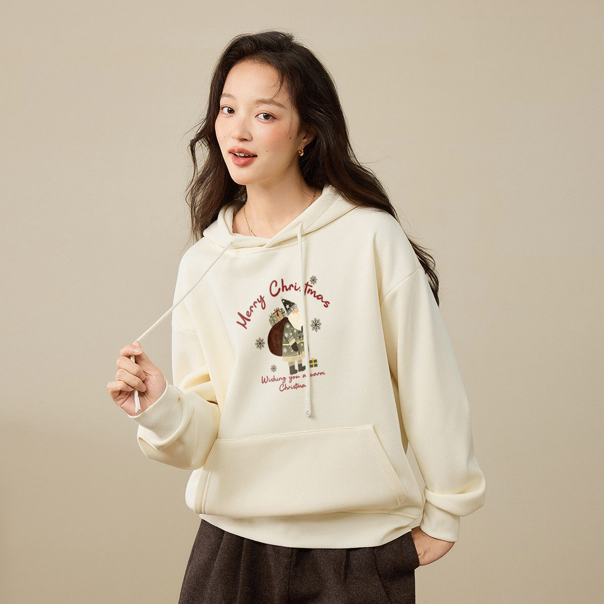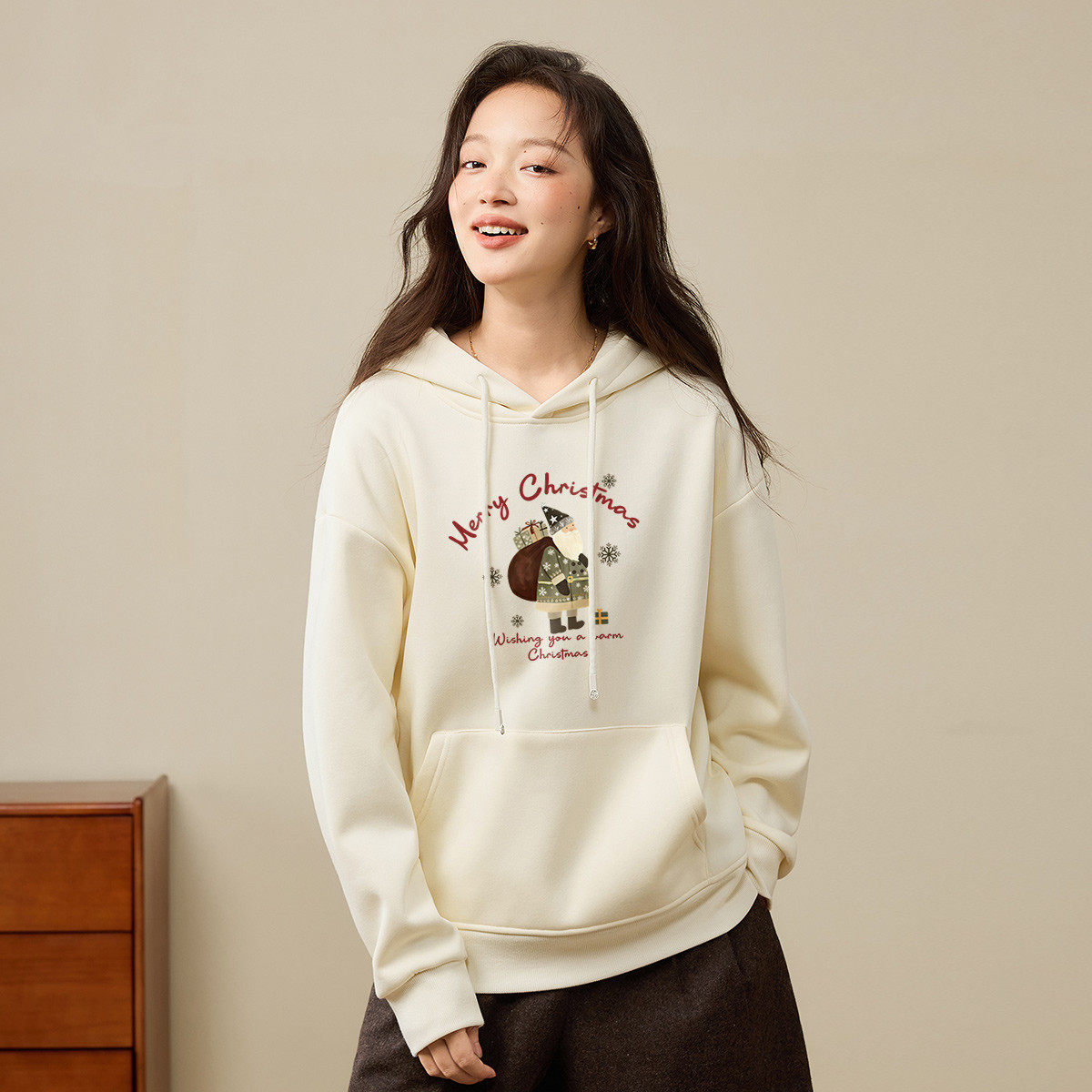 茵曼2025冬季新款加绒加厚保暖长袖卫衣外套女连帽宽松显瘦百搭