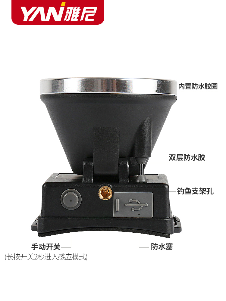 雅尼YN725U感应头灯多功能强光充电超亮头戴电筒钓鱼户外照明矿灯