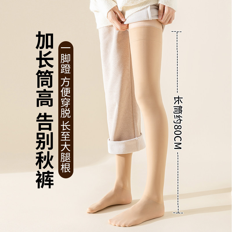 高筒袜子女大码过膝袜黑色加长筒防下滑秋冬款加绒加厚护膝大腿袜