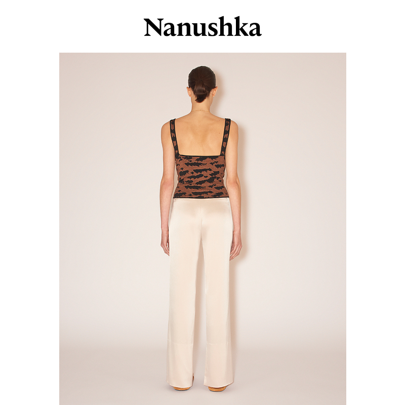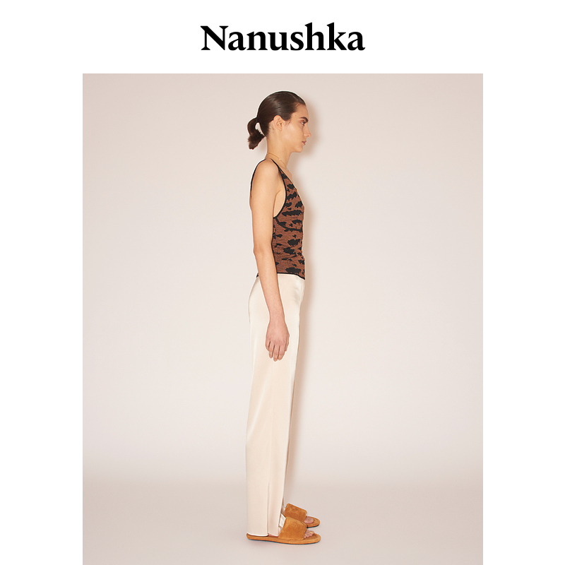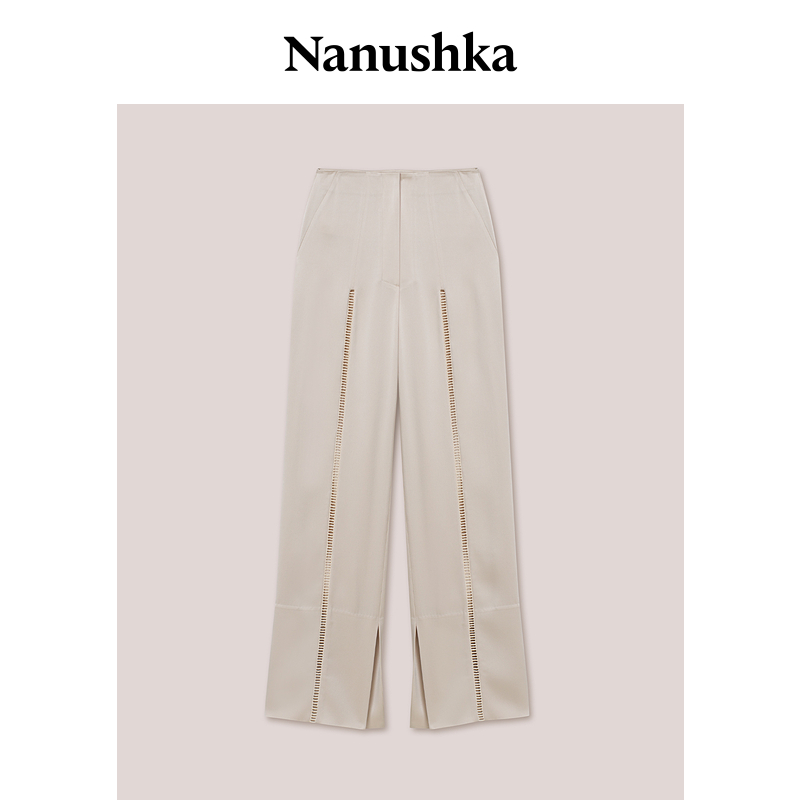 【甄选折扣】NANUSHKA 女士 MIKKI 缎面简约奶油色阔腿长裤休闲裤