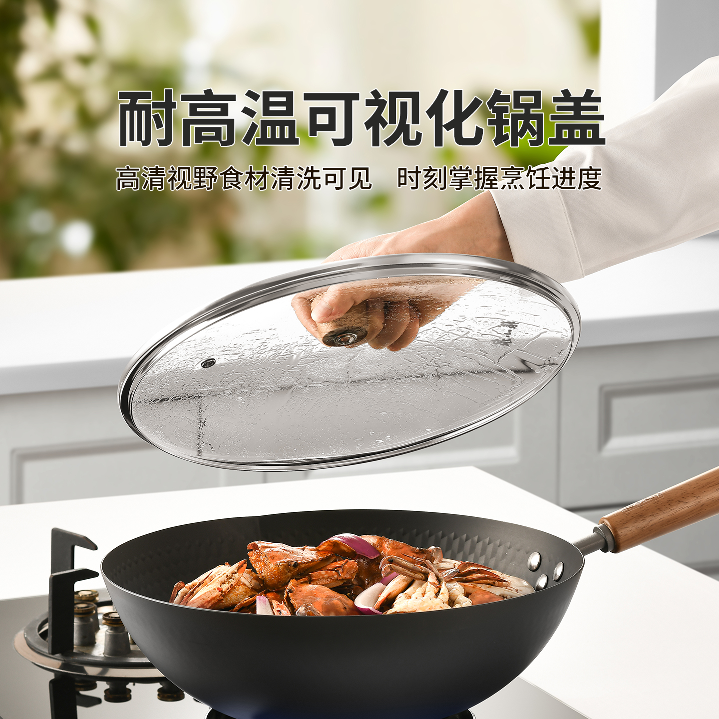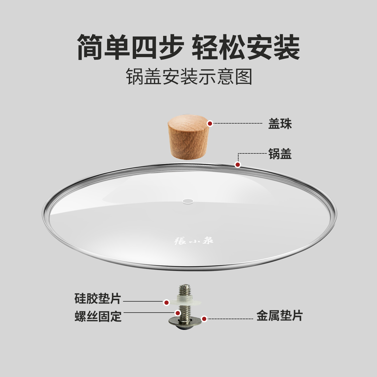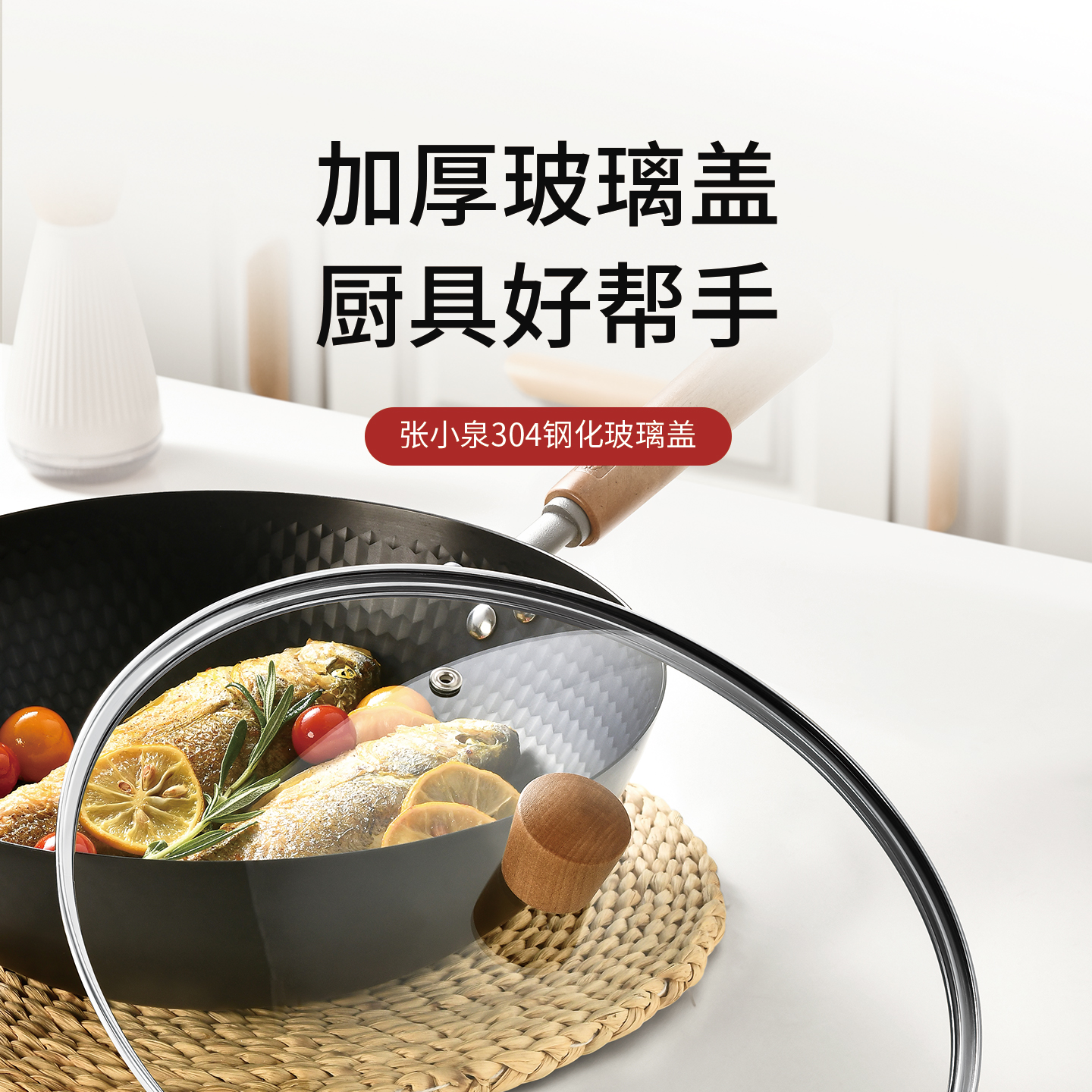 张小泉锅盖不锈钢防爆钢化玻璃盖耐高温家用炒锅煎锅通用厨房配件