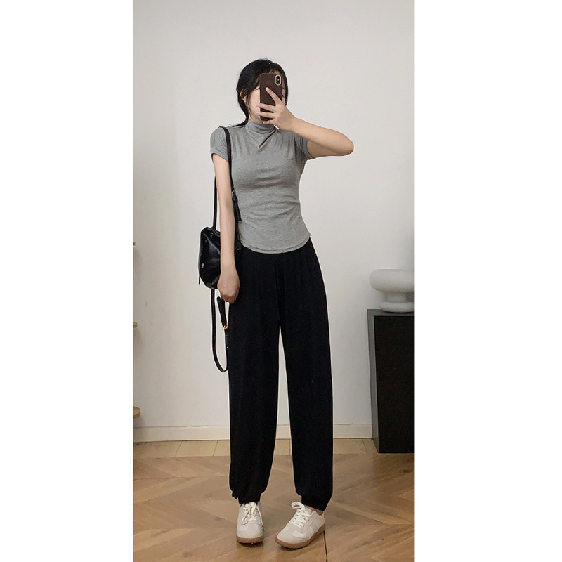 薄款哈伦裤女夏天2024新款小个子遮肚萝卜裤九分运动休闲束脚裤子