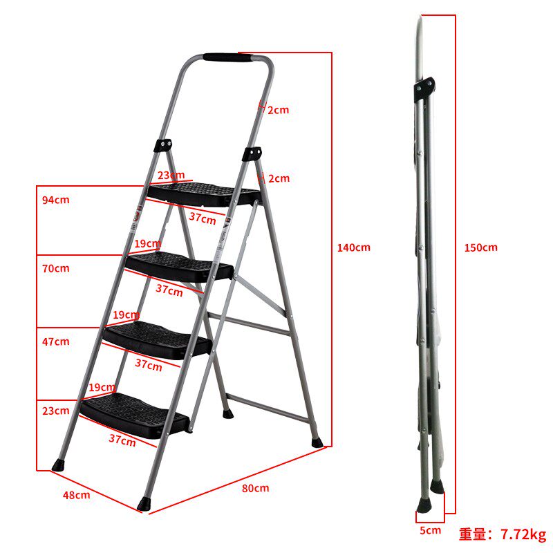 美国稳耐家用梯子人字梯折叠梯防滑宽踏F板加厚四步铁梯244-5CN