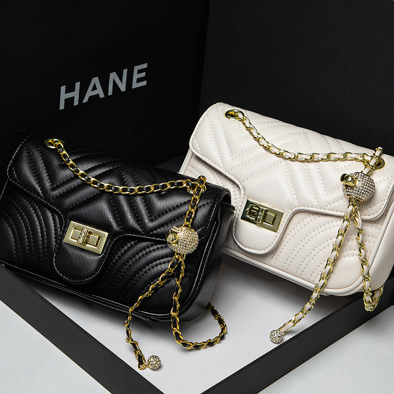 品牌链条包女钻石金球马蒙小方包真皮肩斜挎包百搭斜挎女包